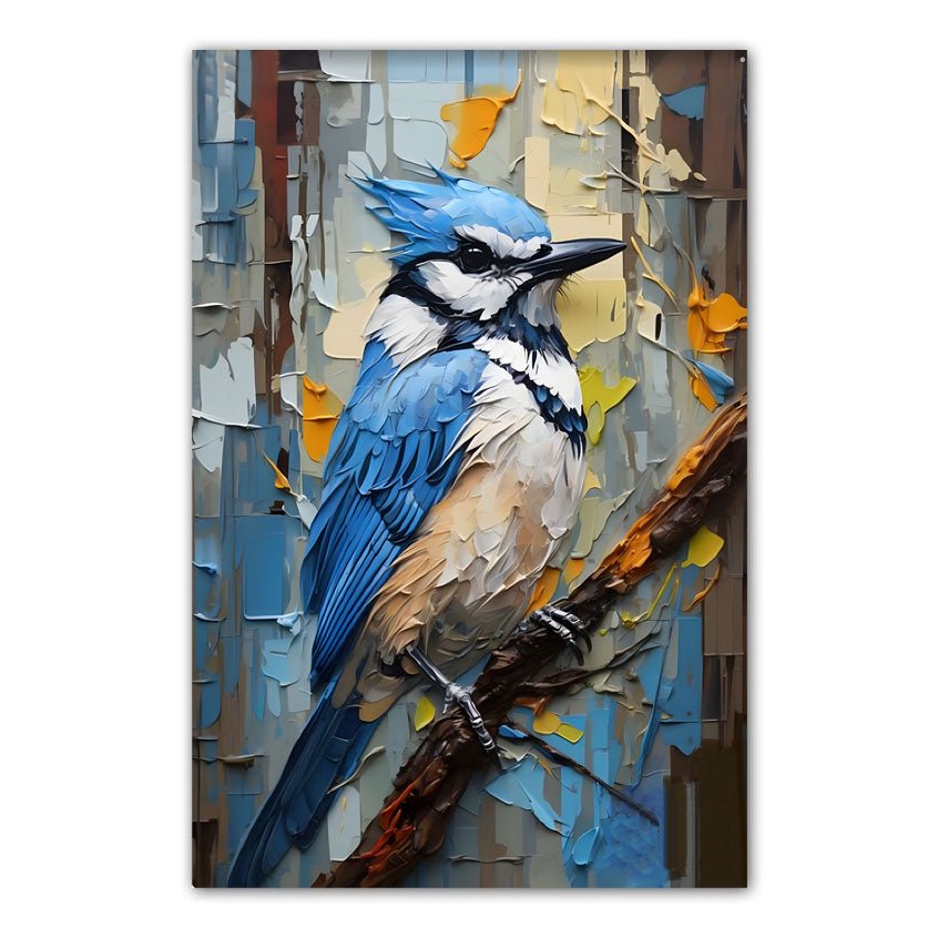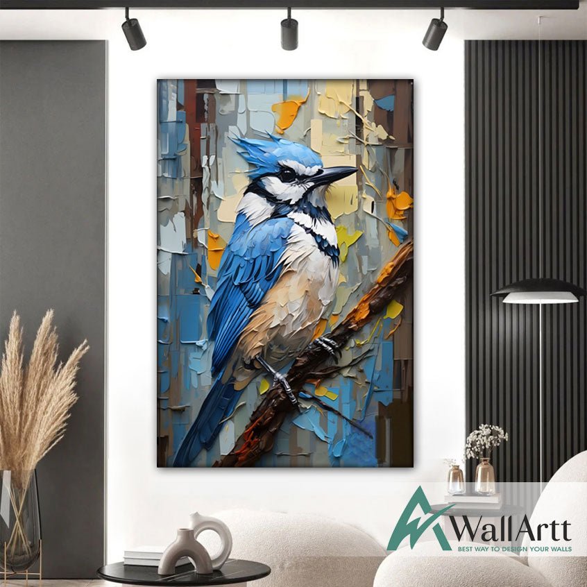 Abstract Blue Bird 3D Heavy Textured Partial Oil Painting