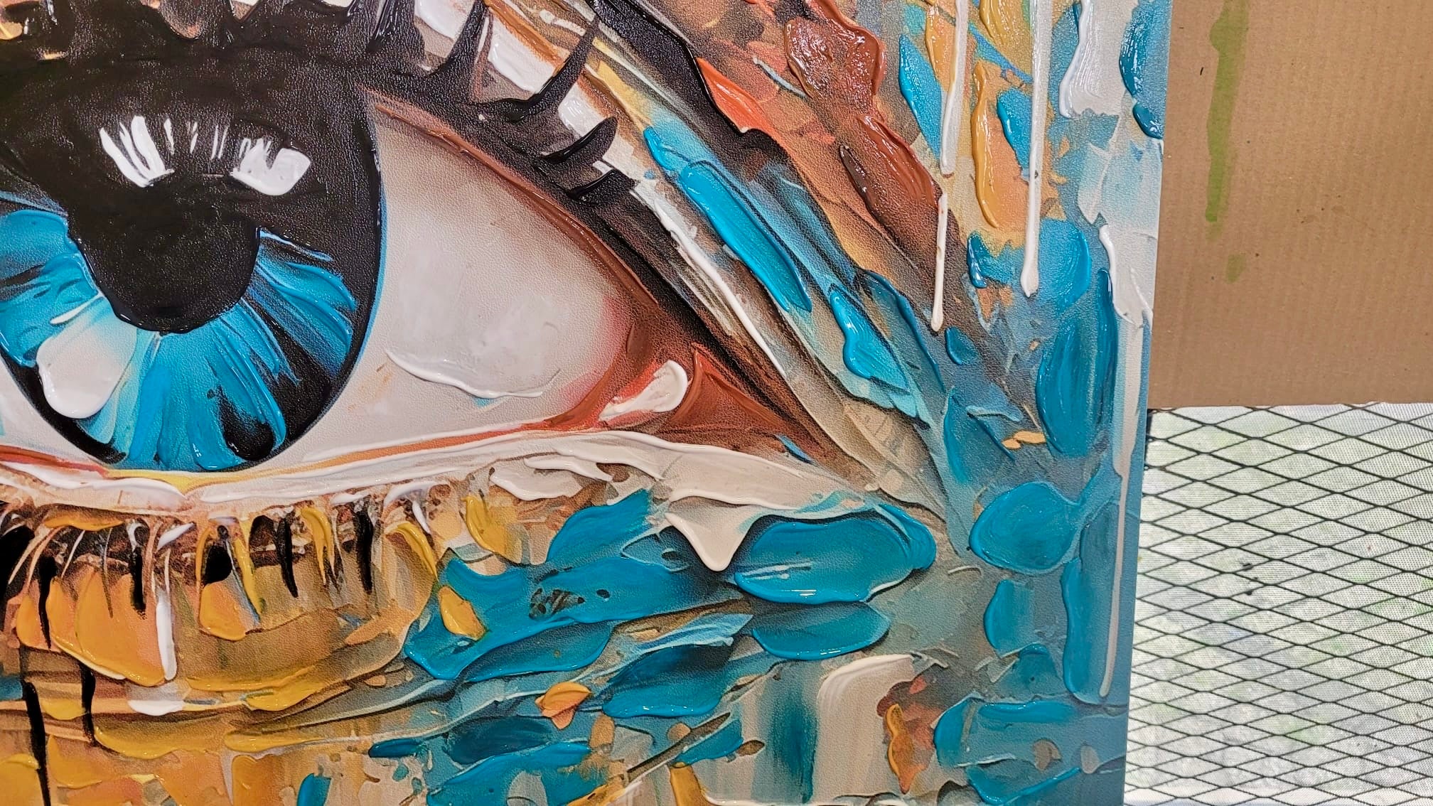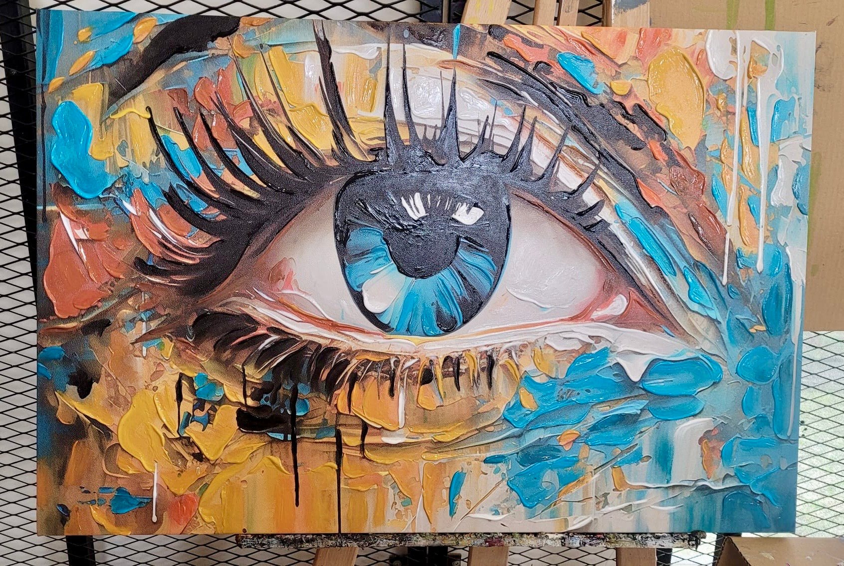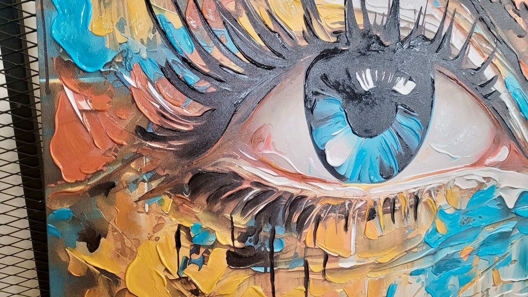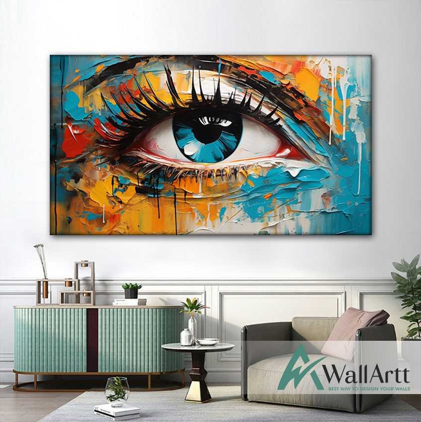 Abstract Blue Eye 3D Heavy Textured Partial oil Painting