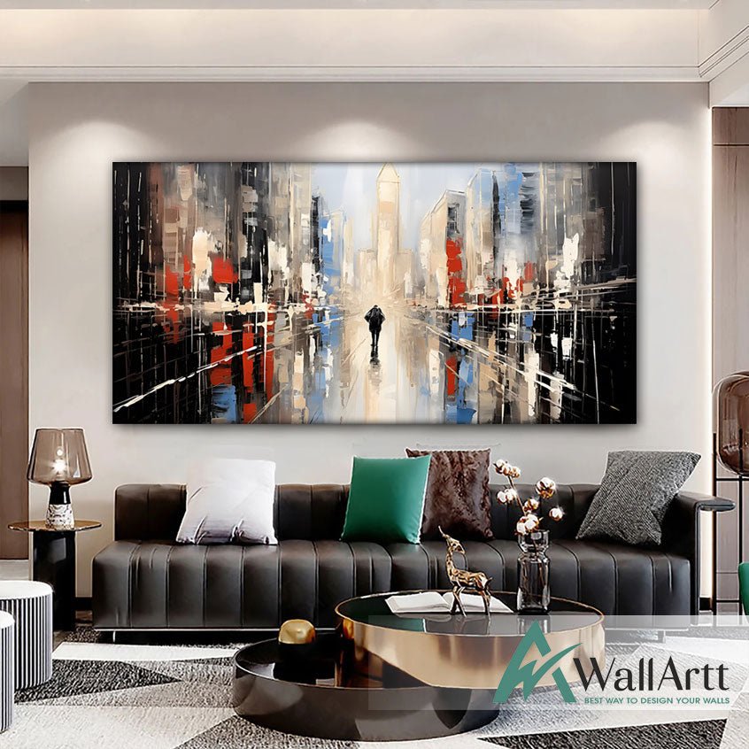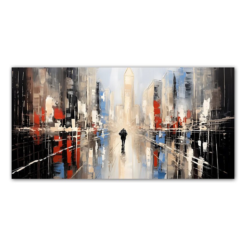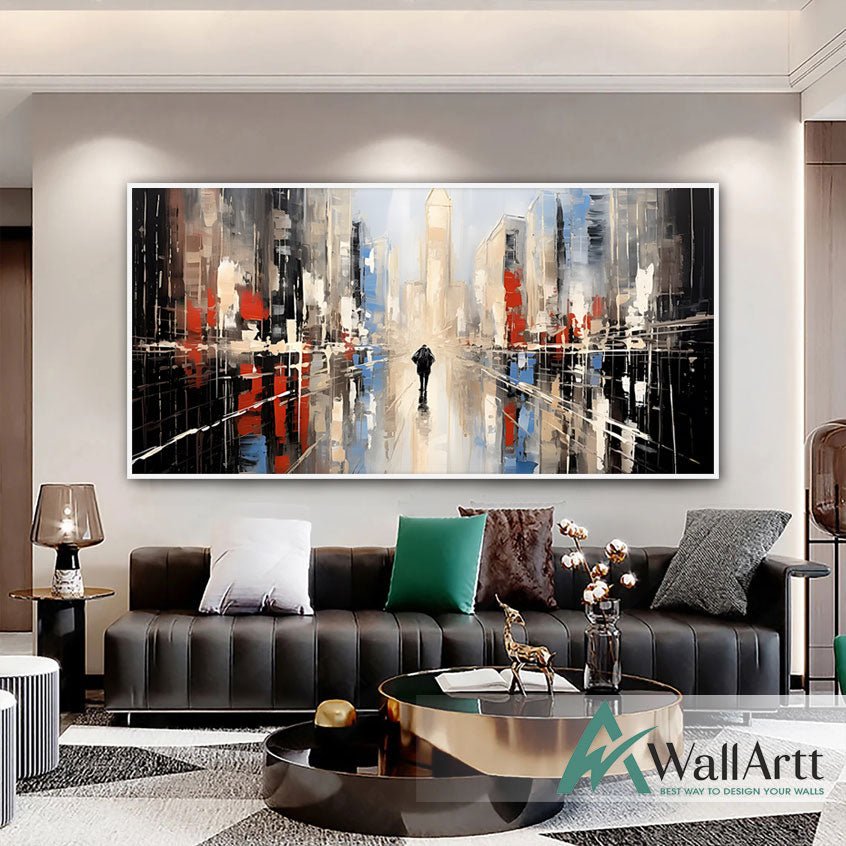Abstract Blue Street 3D Heavy Textured Partial Oil Painting - Wall Art