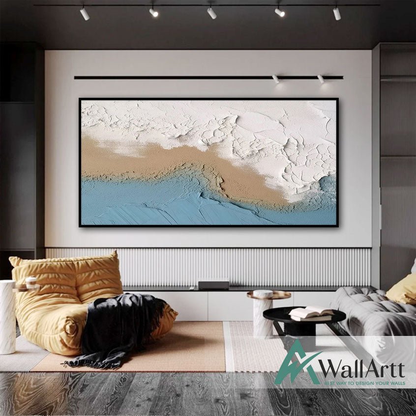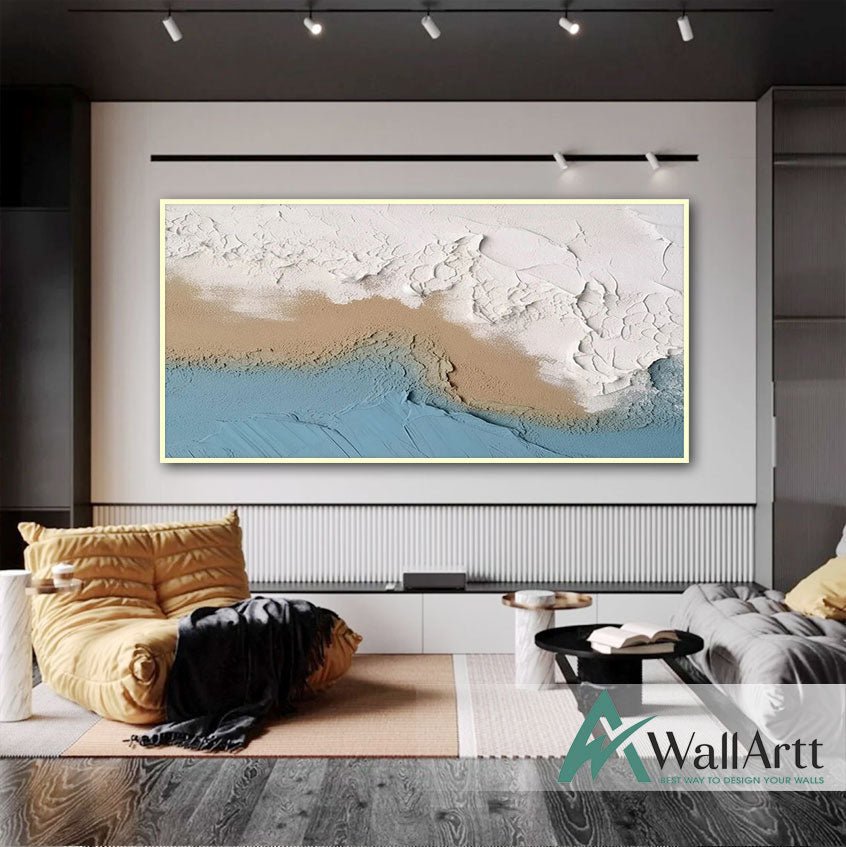 Abstract Blue Waves 3d Heavy Textured Partial Oil Painting