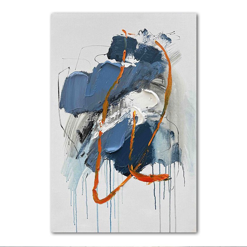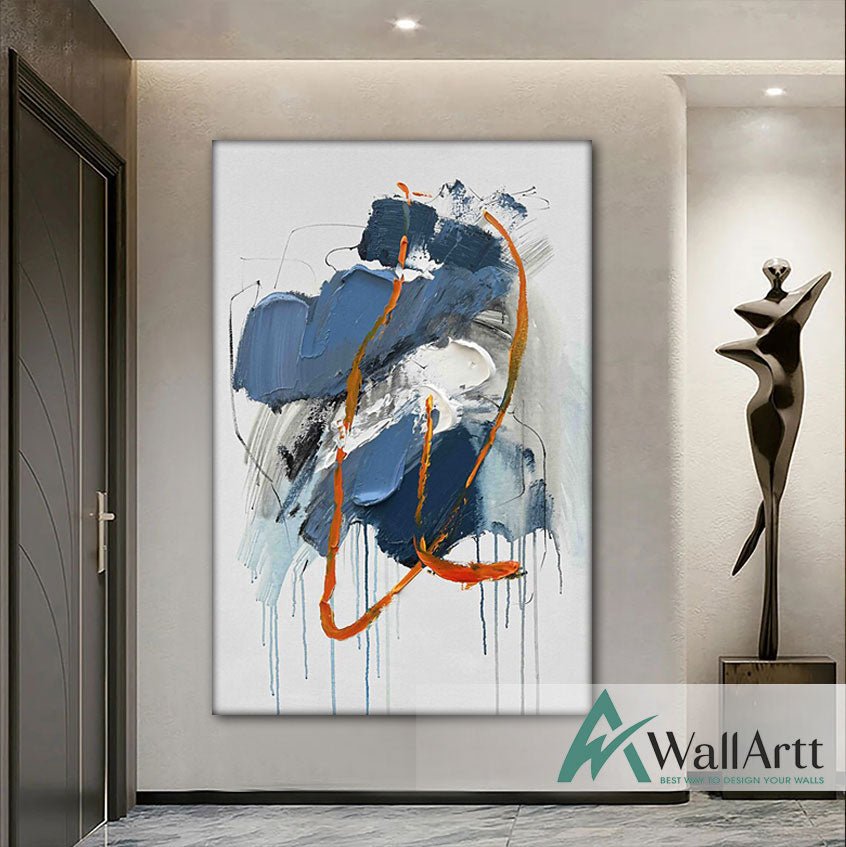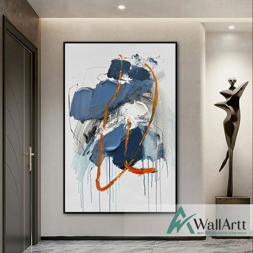 Abstract Blue with Orange 3D Heavy Textured Partial Oil Painting