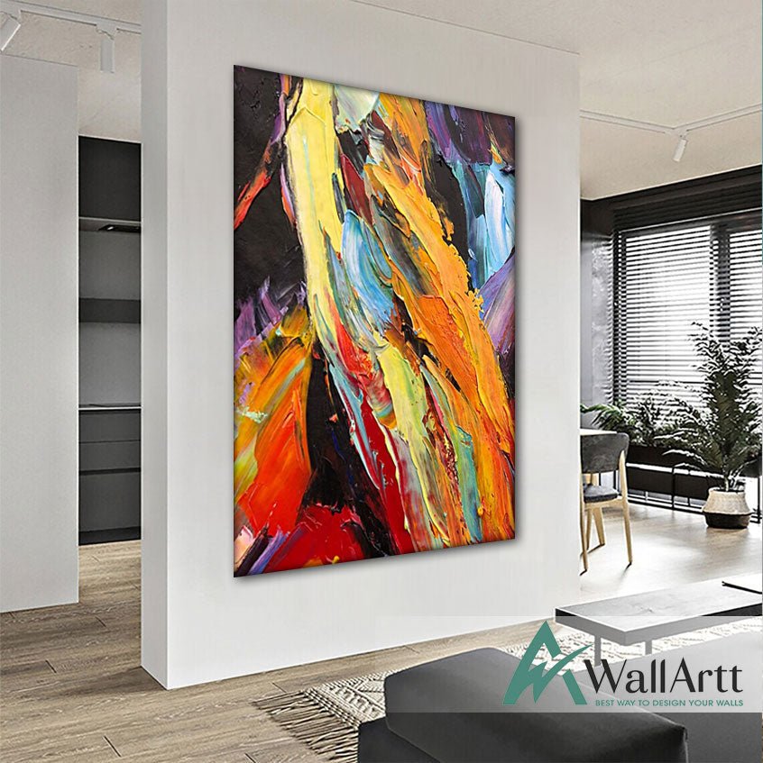Abstract Color Flames 3D Heavy Textured Partial Oil Painting