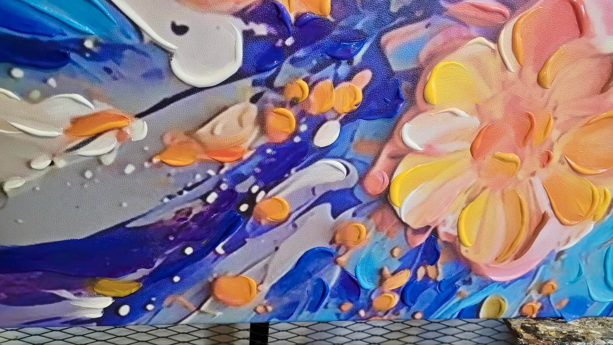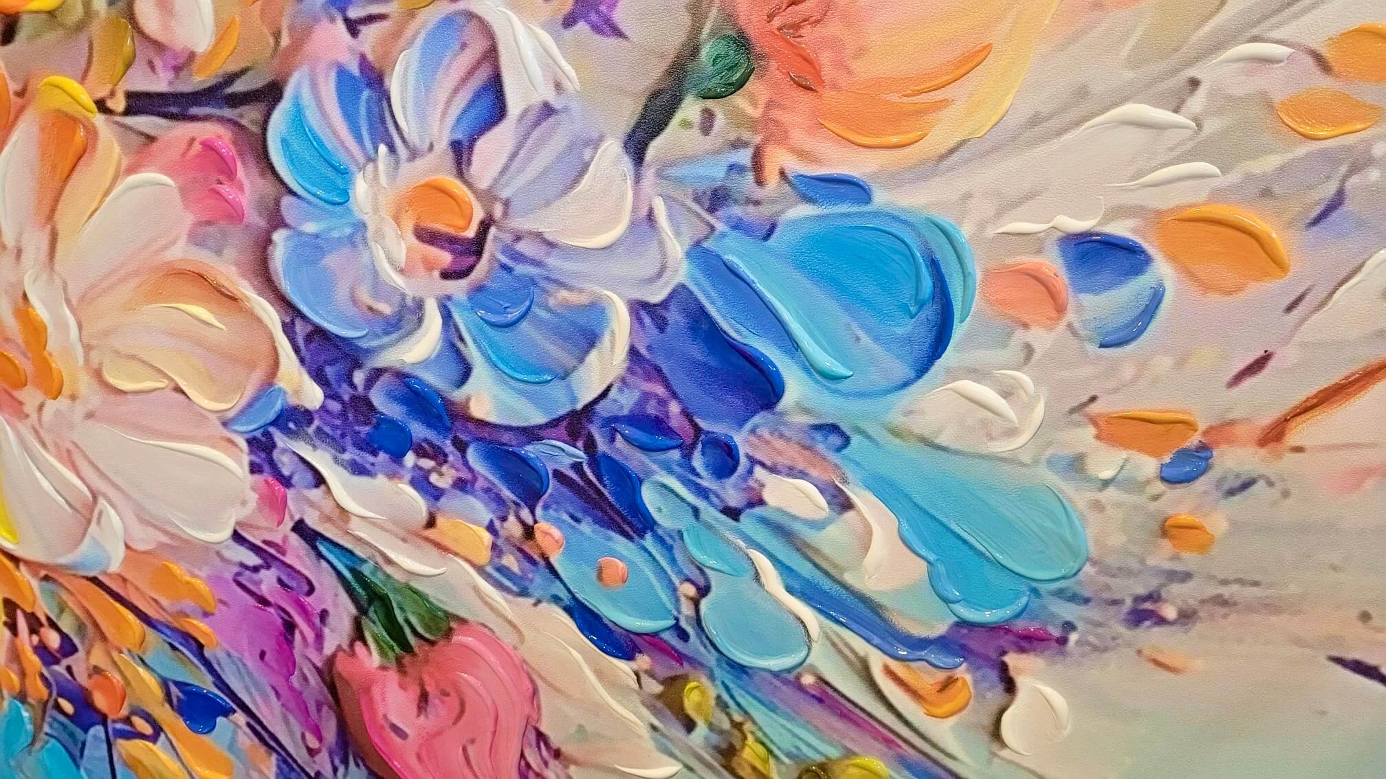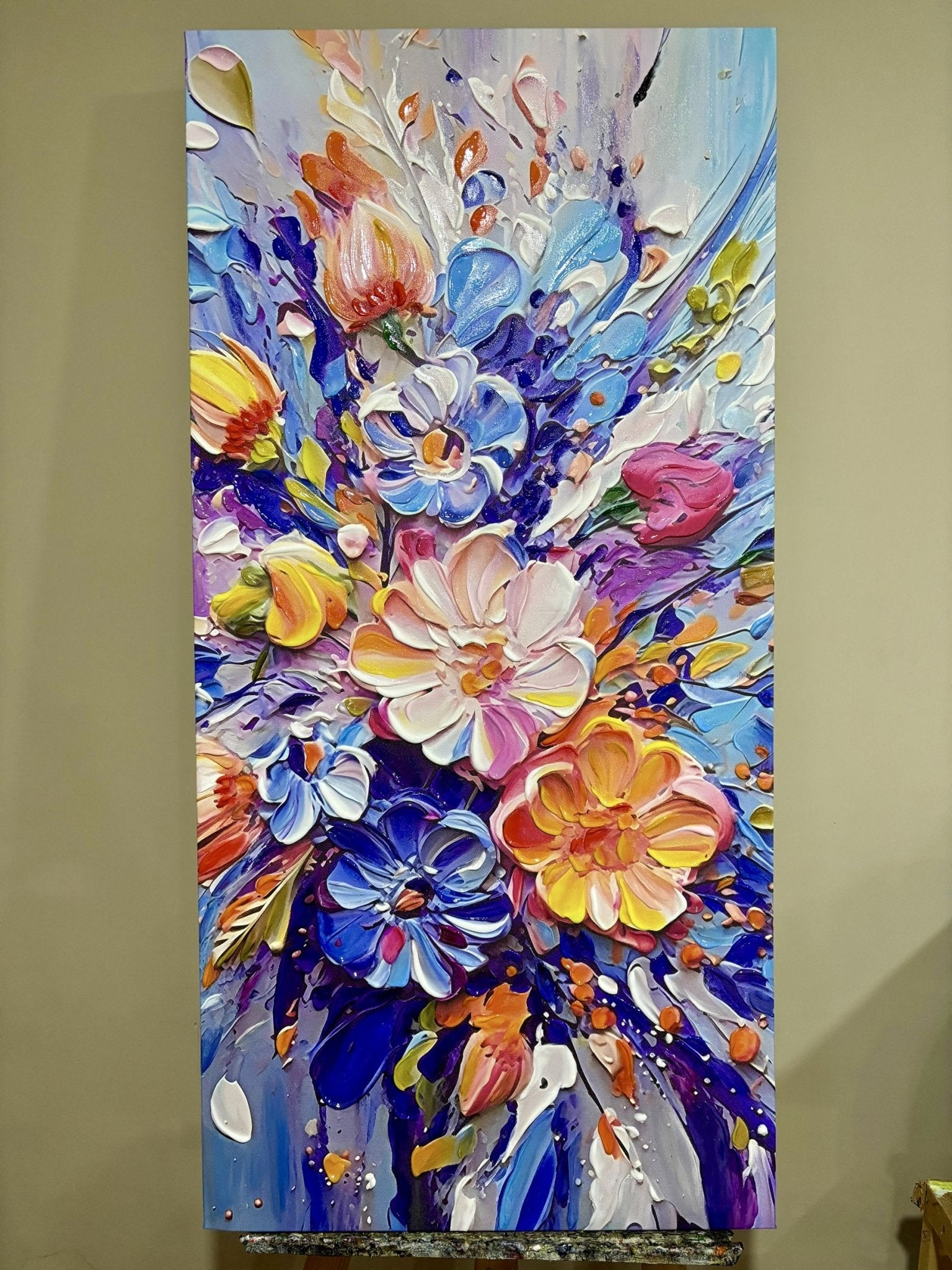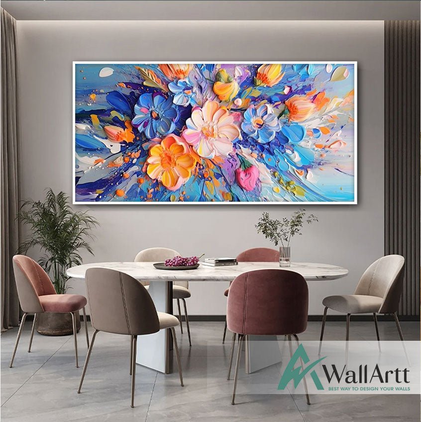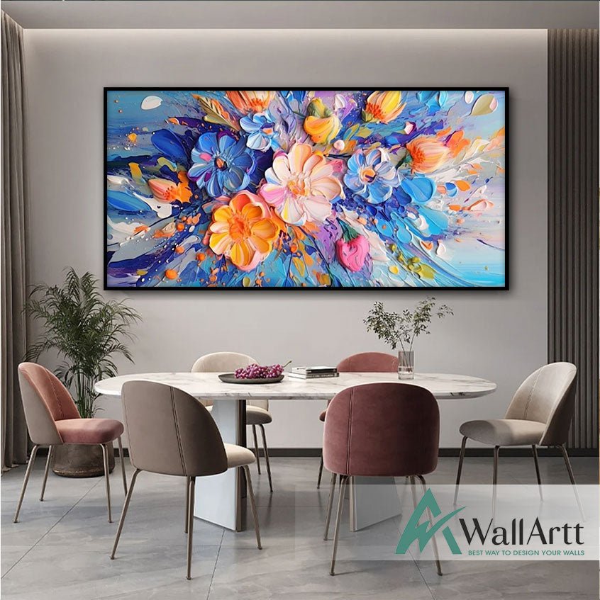 Abstract Colorful Flowers 3d Heavy Textured Partial Oil Painting