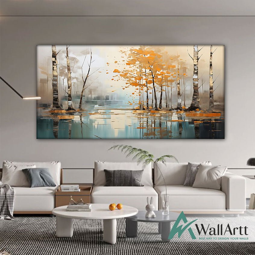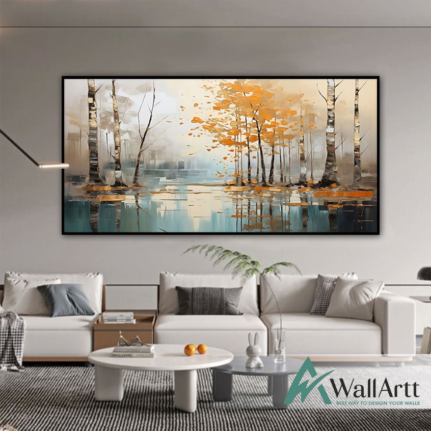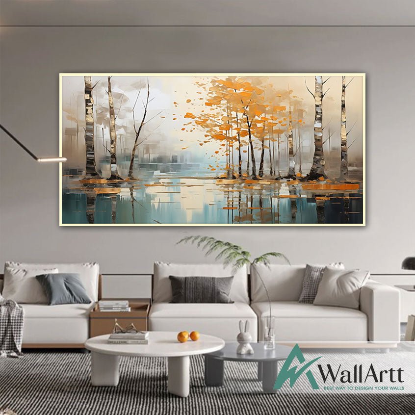 Autumn Reflections 3d Heavy Textured Partial Oil Painting