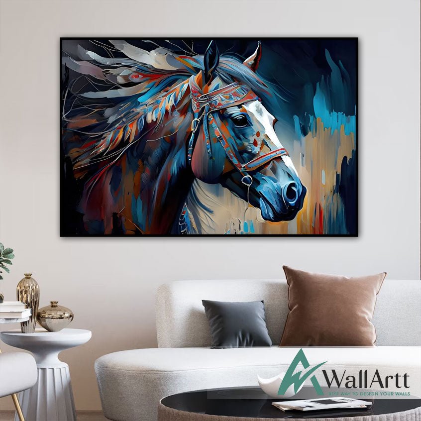 Blue Orange Horse 3D Heavy Textured Partial Oil Painting