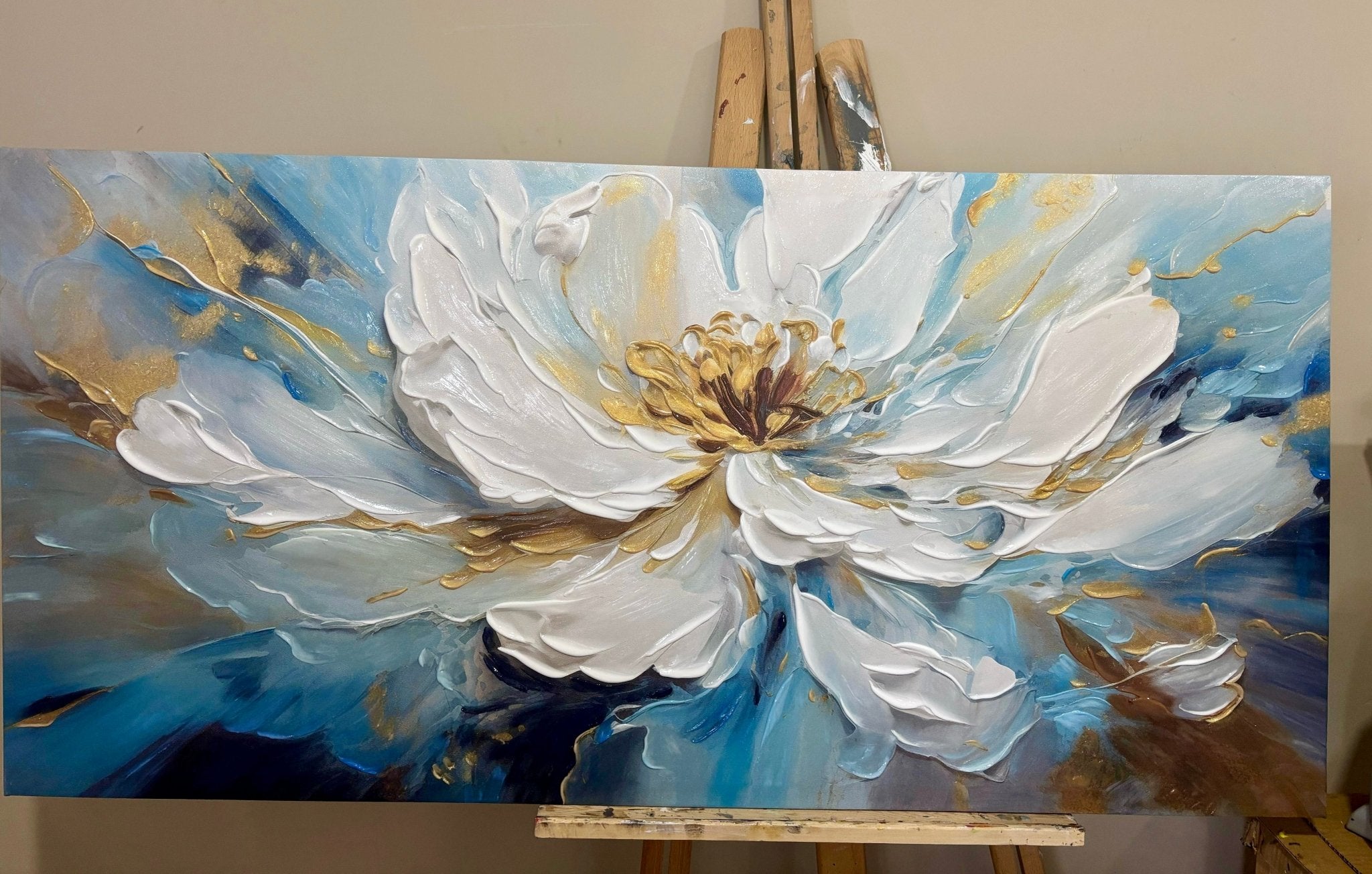Blue White Flower 3d Heavy Textured Partial Oil Painting