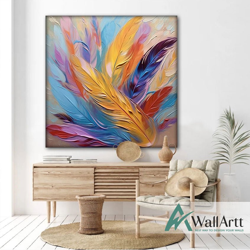 Colorful Bird Feather II 3d Heavy Textured Oil Painting