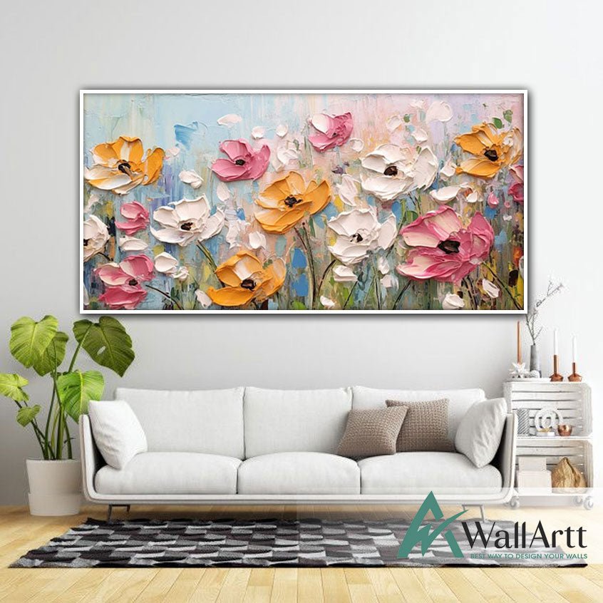Colorful Flowers 3d Heavy Textured Partial Oil Painting