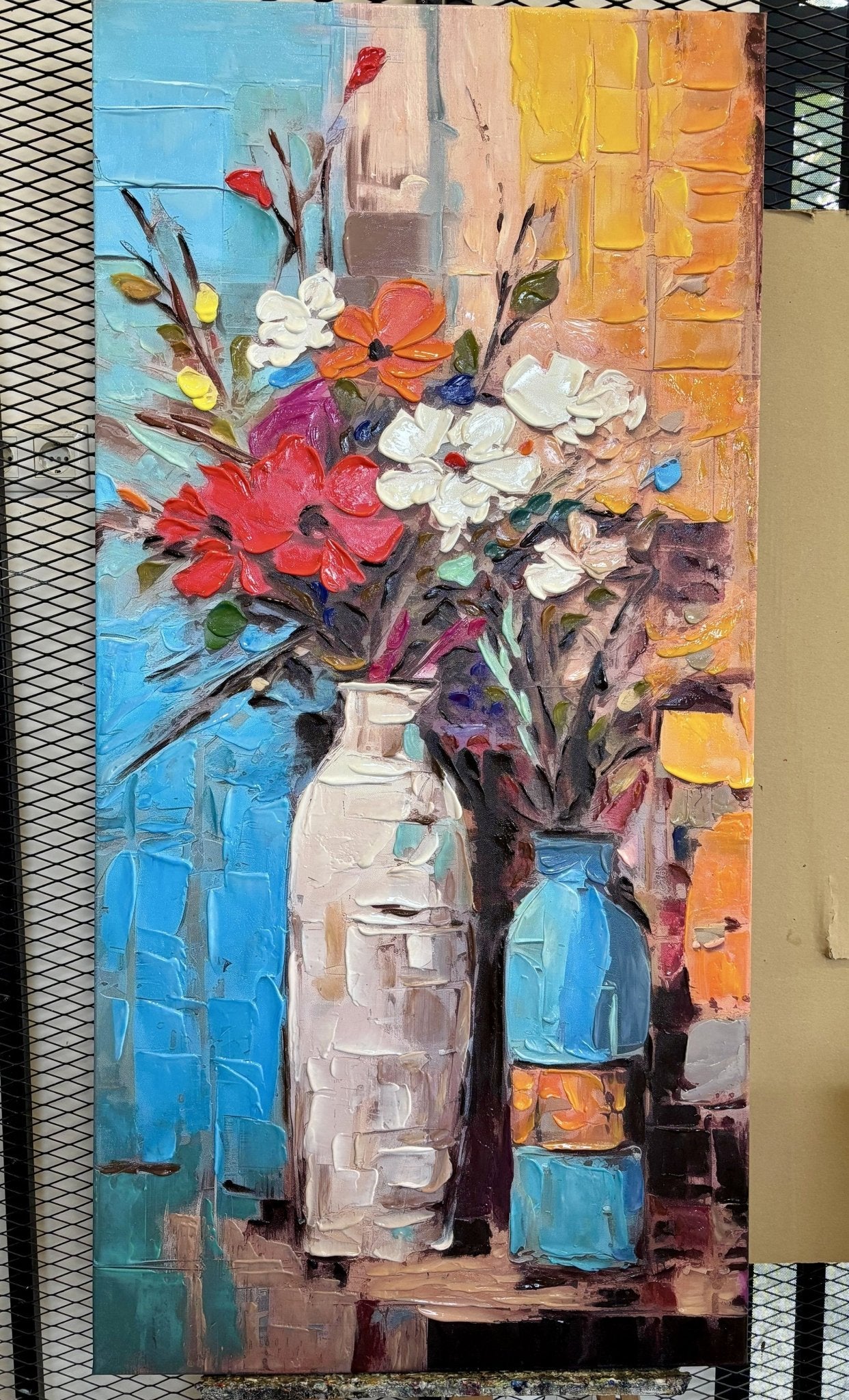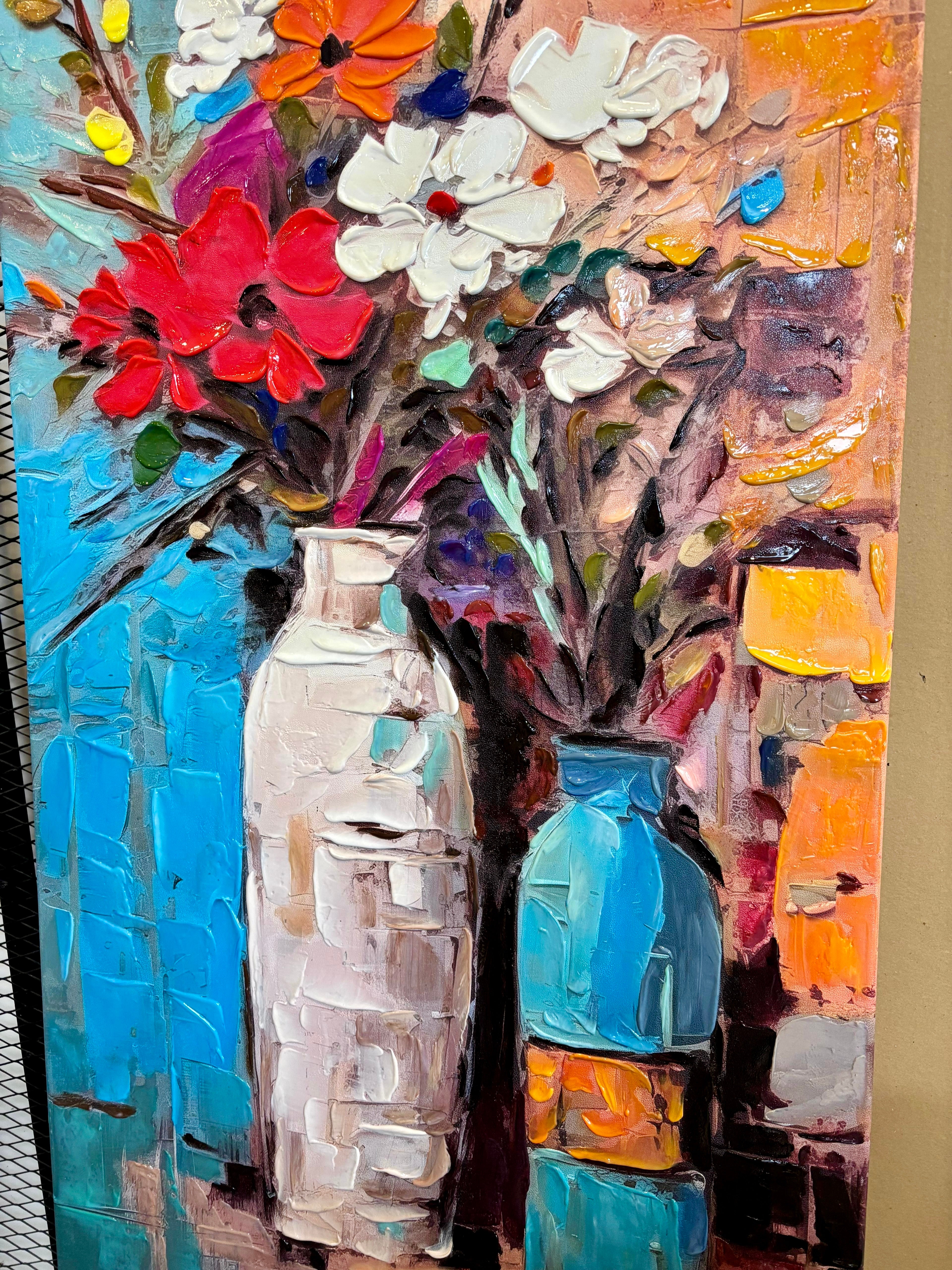 Colorful Flowers in Vazes 3d Heavy Textured Oil Painting