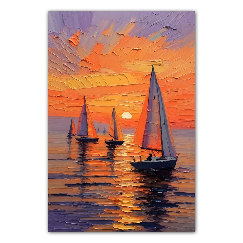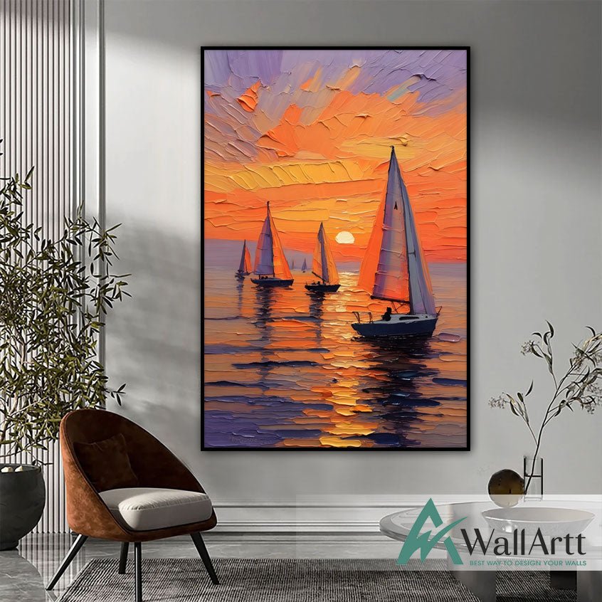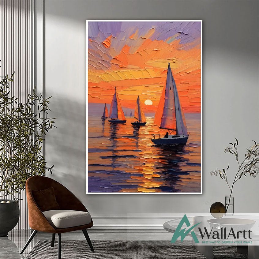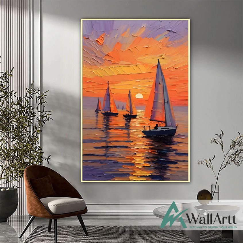 Orange Sunset Voyage 3d Heavy Textured Partial Oil Painting