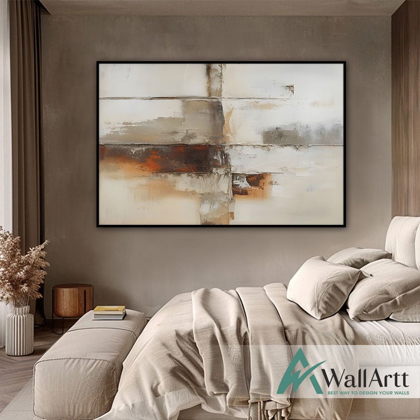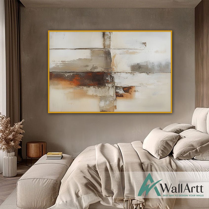 Orange Beige Abstract Textured Partial Oil Painting - WallArtt