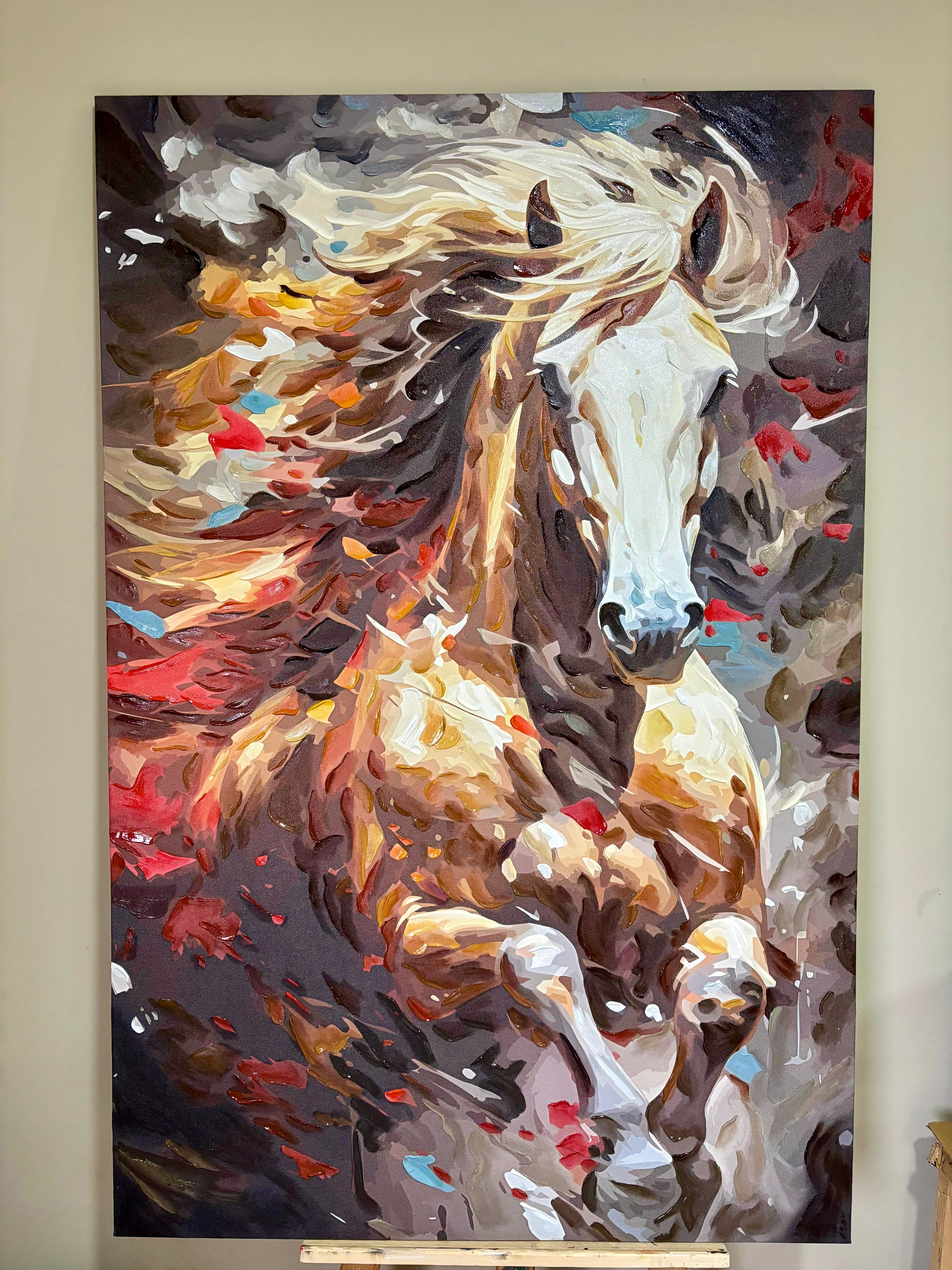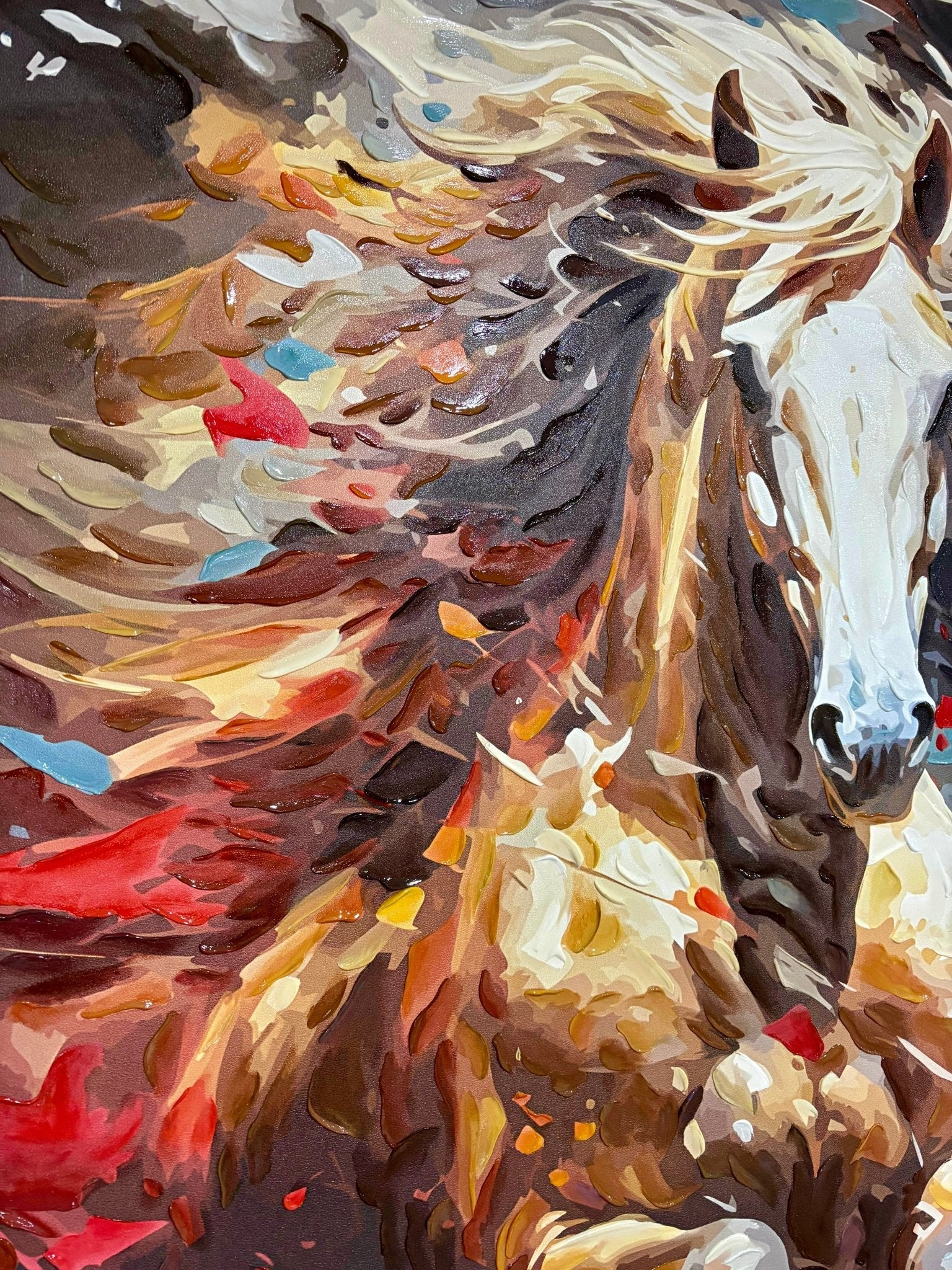 Orange Maned Horse Abstract Textured Partial Oil Painting - Wall Art
