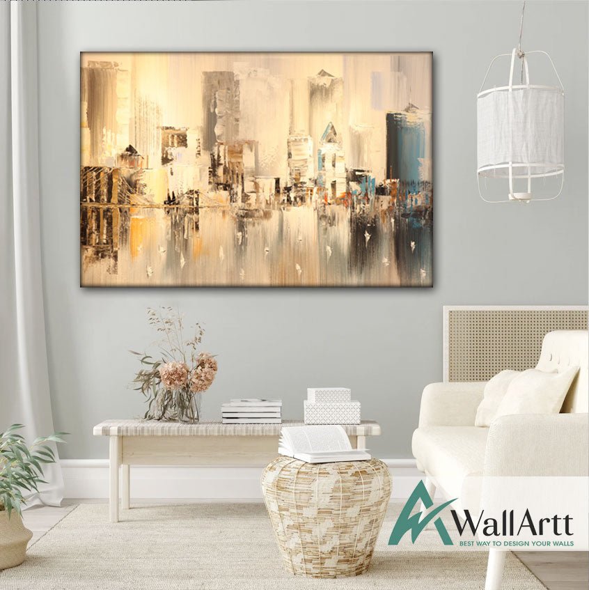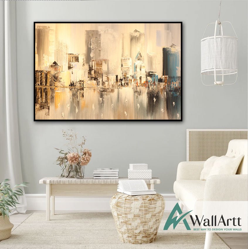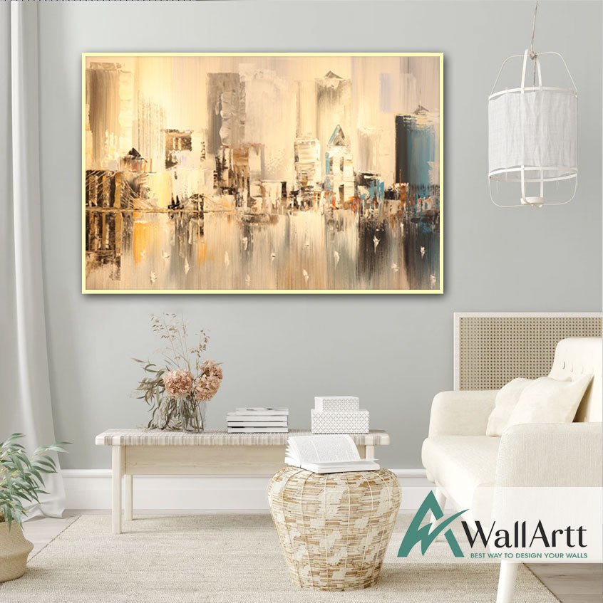 Abstract Misty Skyscrapers II Textured Partial Oil Painting