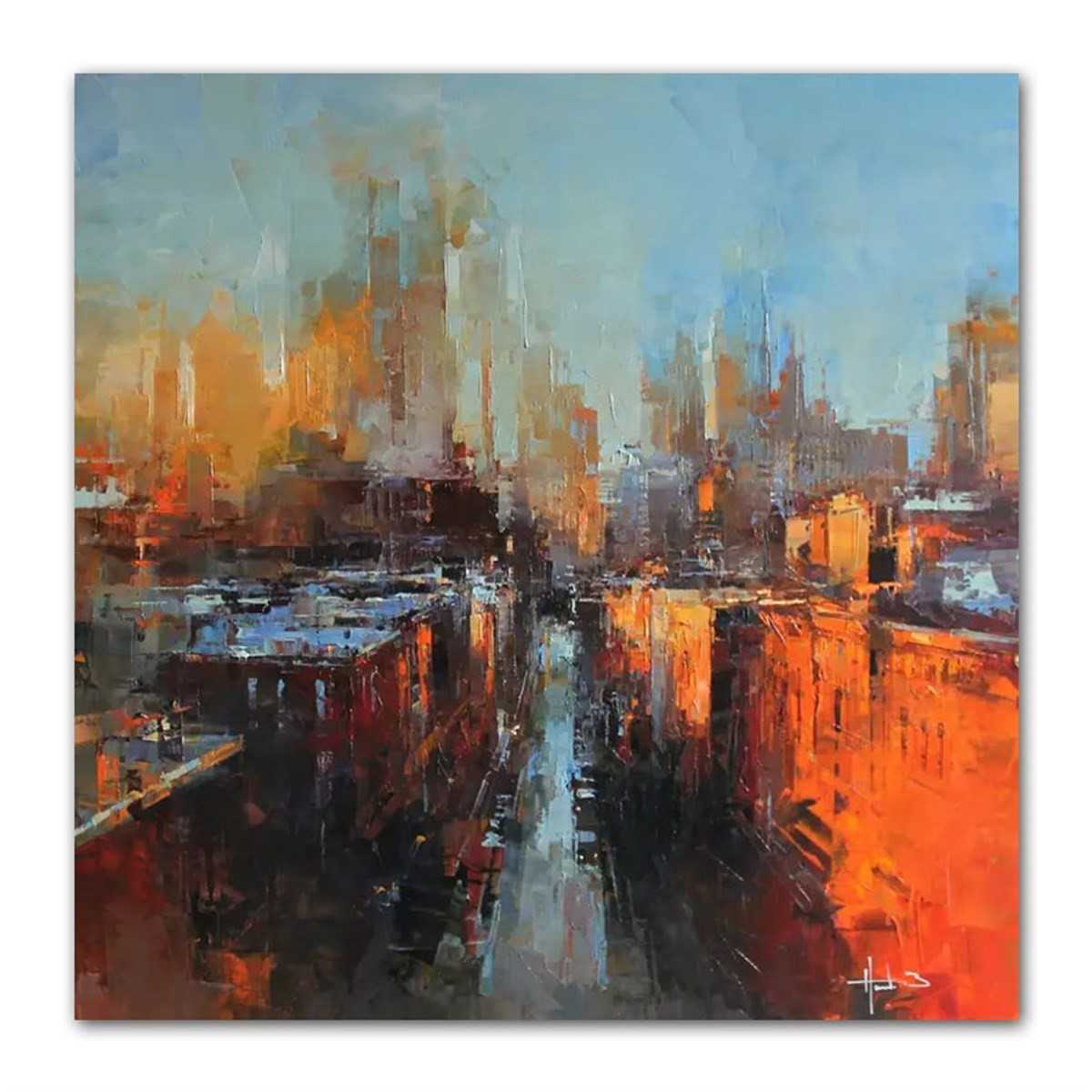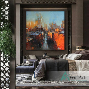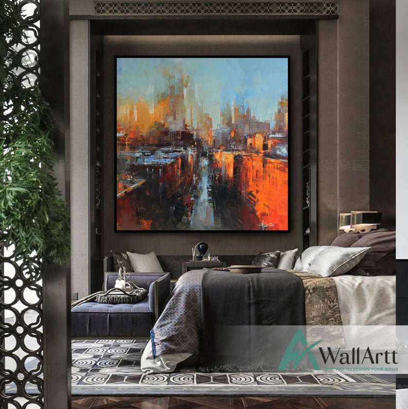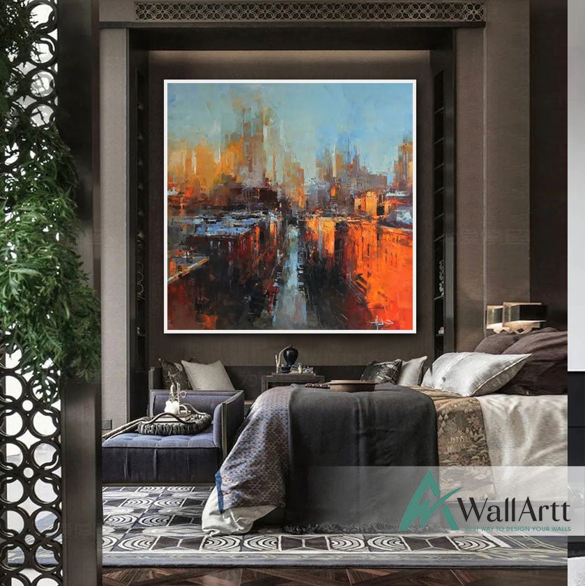 Abstract Orange City Night Textured Partial Oil Painting