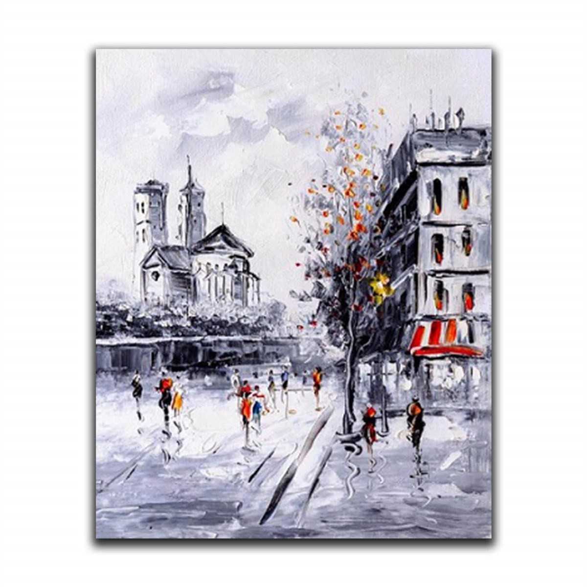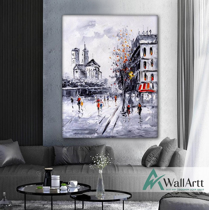 Black n White City View Textured Partial Oil Painting
