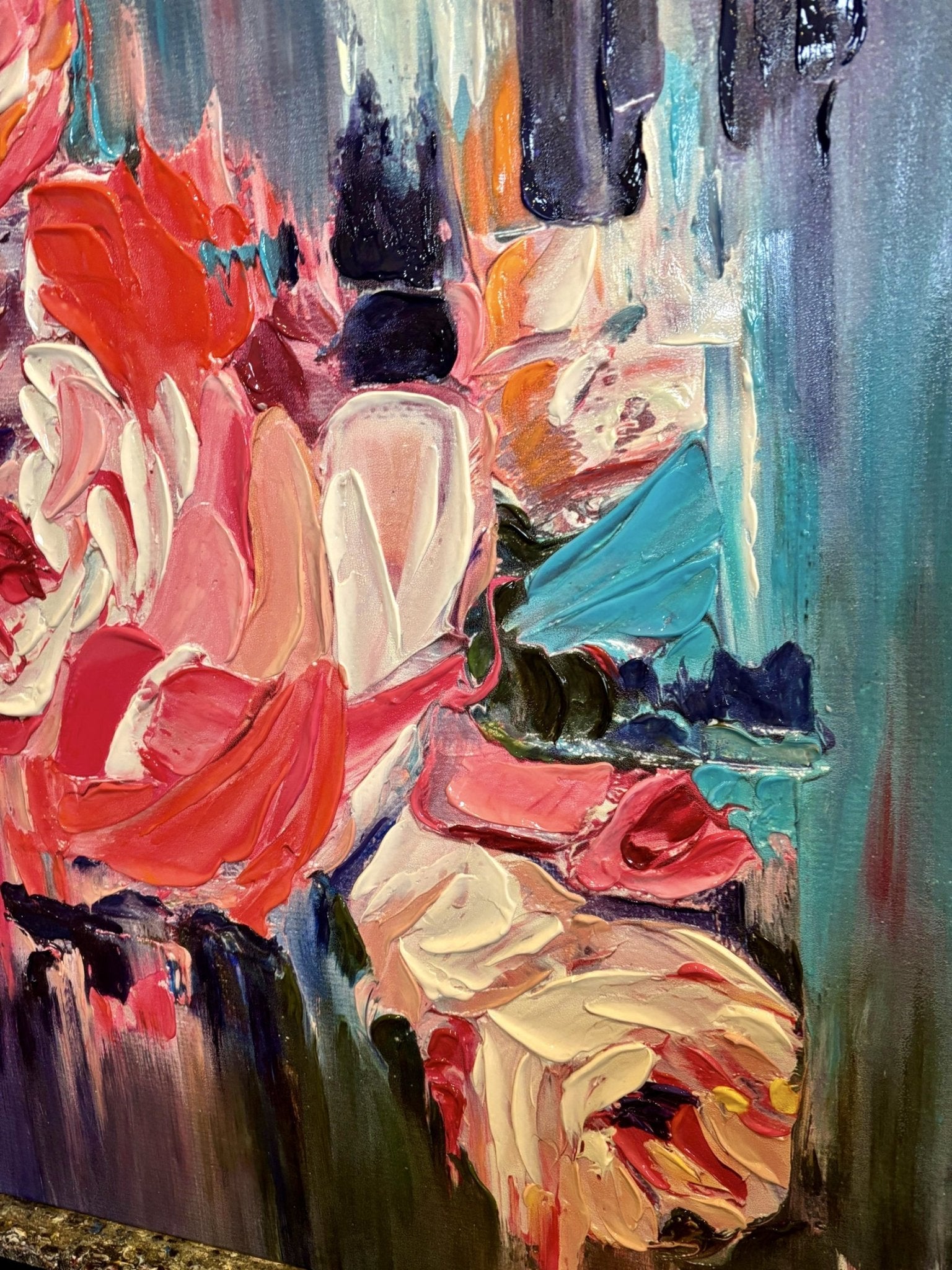 Our textured partial oil paintings are partially oil-painted artworks on printed canvases, created by our artists.