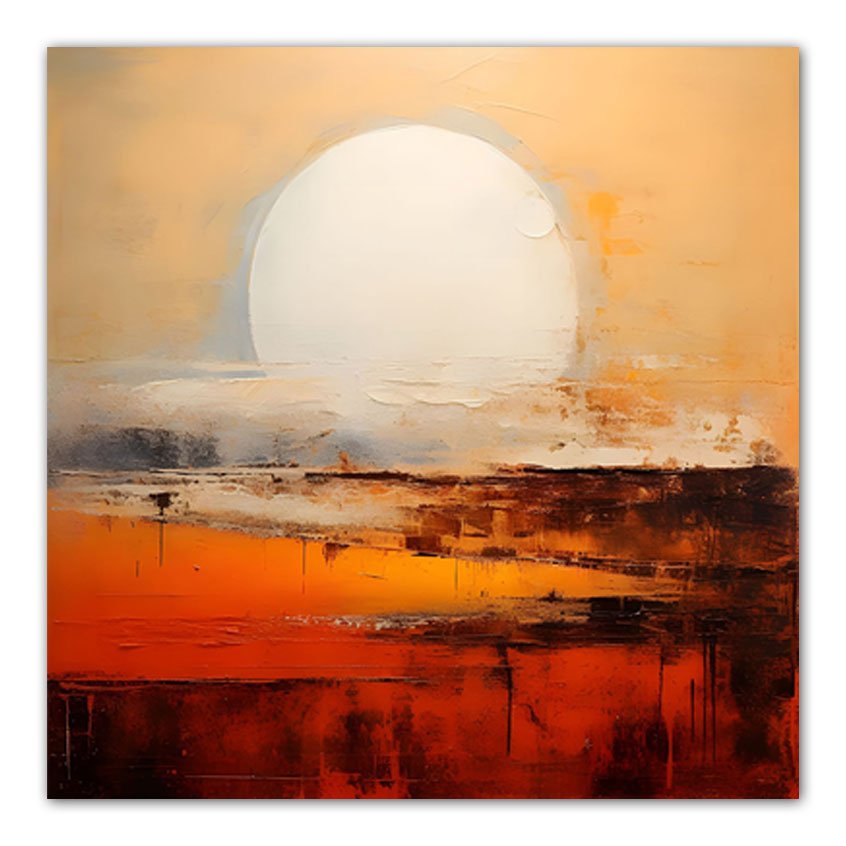 Abstract Orange Sun Dawn Textured Partial Oil Painting - Wall Art