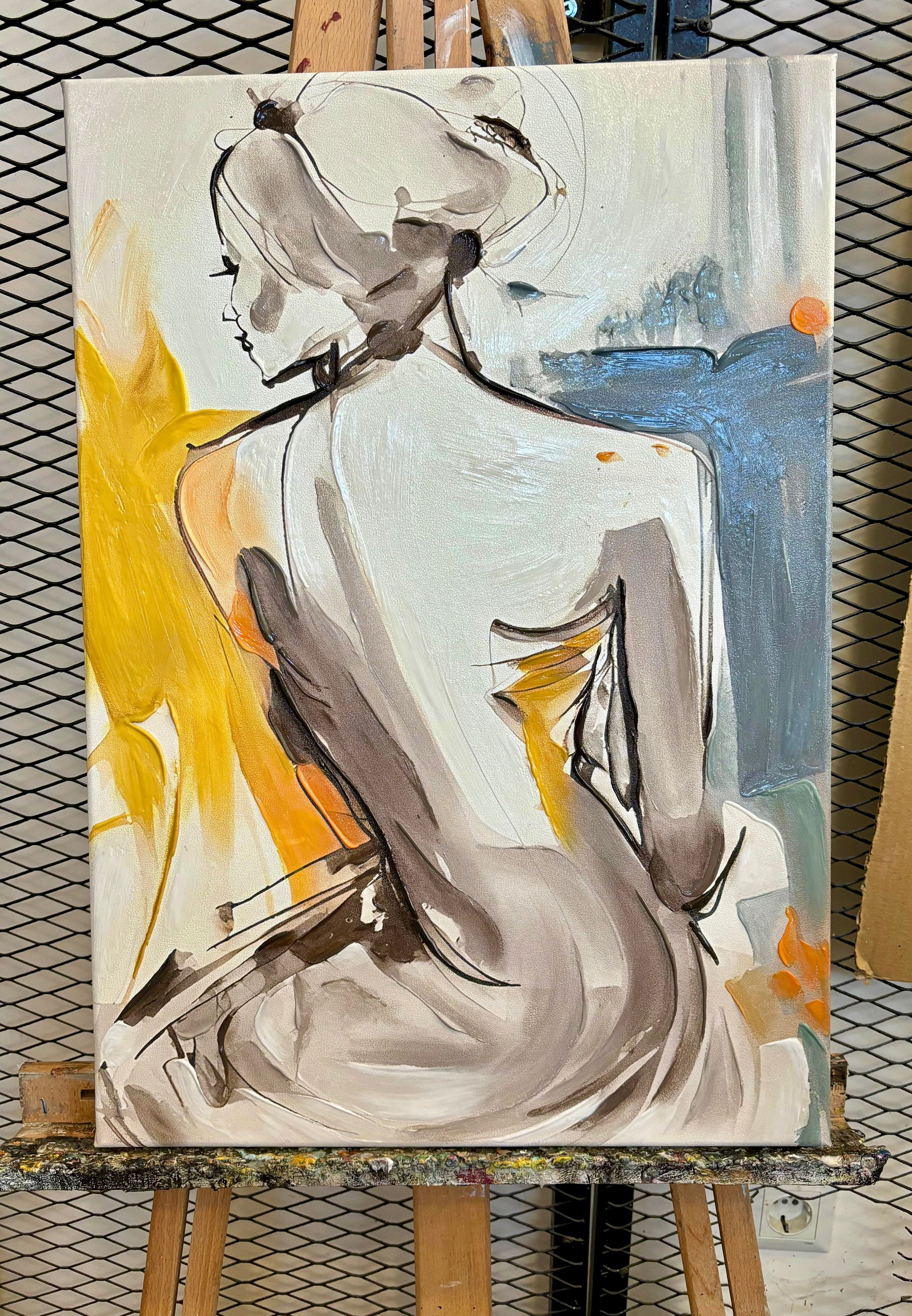 Woman's Back Textured Partial Oil Painting - Wall Art