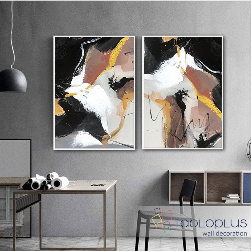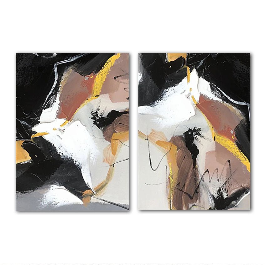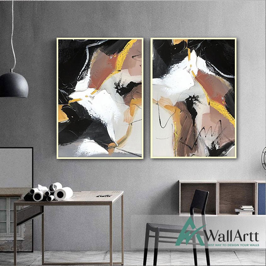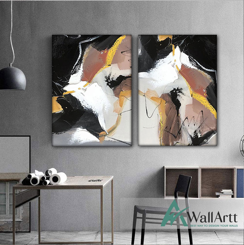Abstract Brown Black 2 Piece Textured Partial Oil Painting