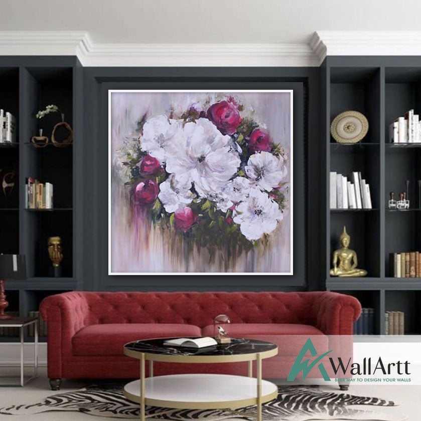 Abstract Flower Bouquet Textured Partial Oil Painting