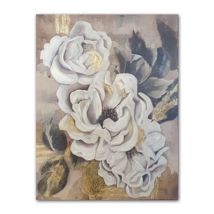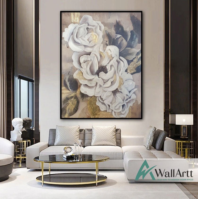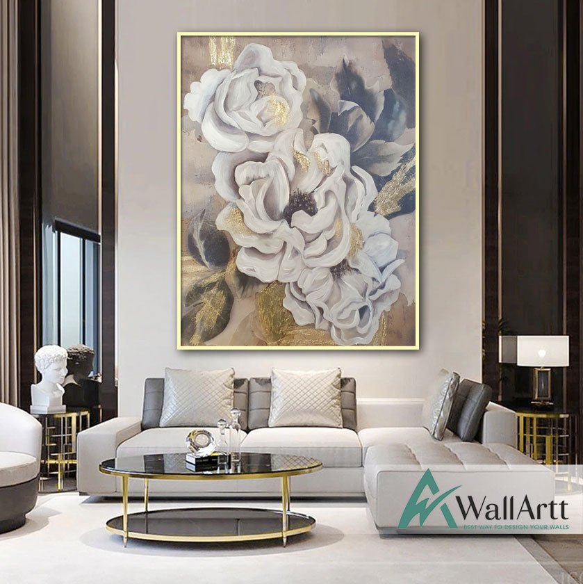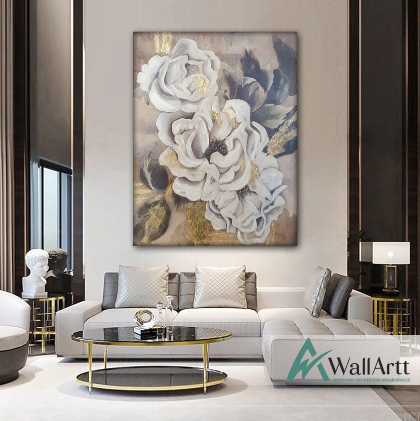 Abstract Flower with Gold Foil Textured Partial Oil Painting