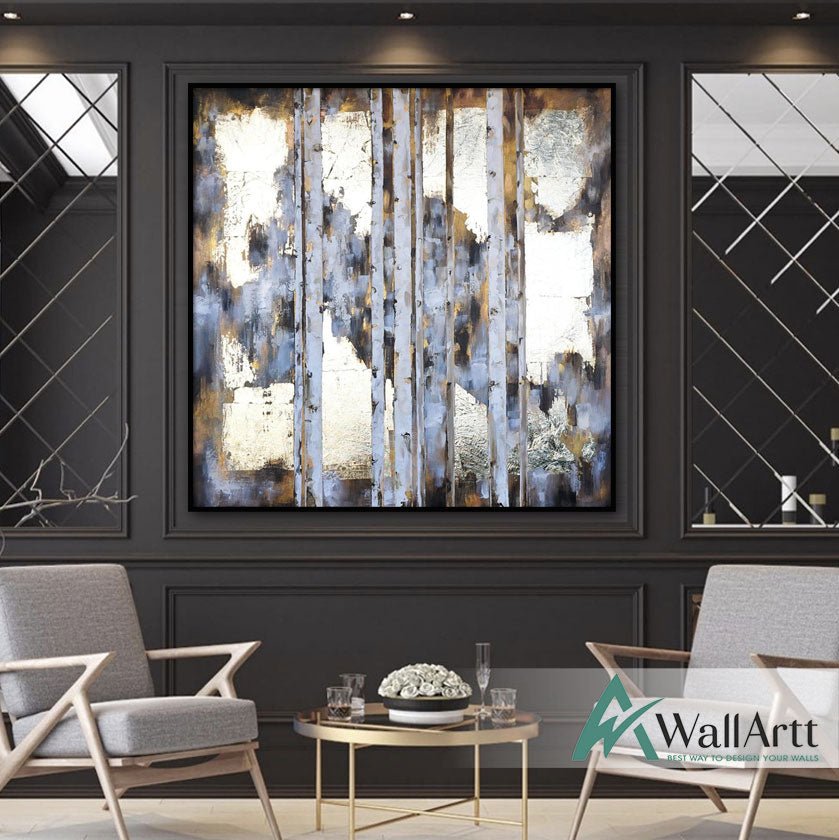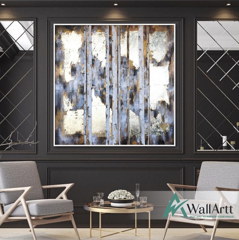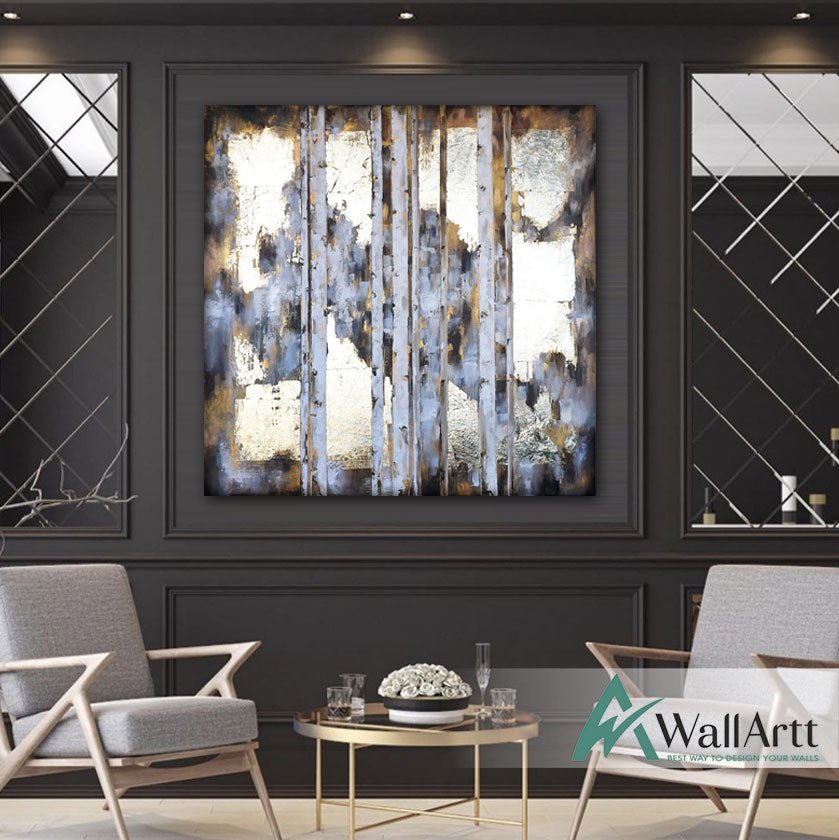 Abstract Gold Bars with Gold Foil Textured Partial Oil Painting