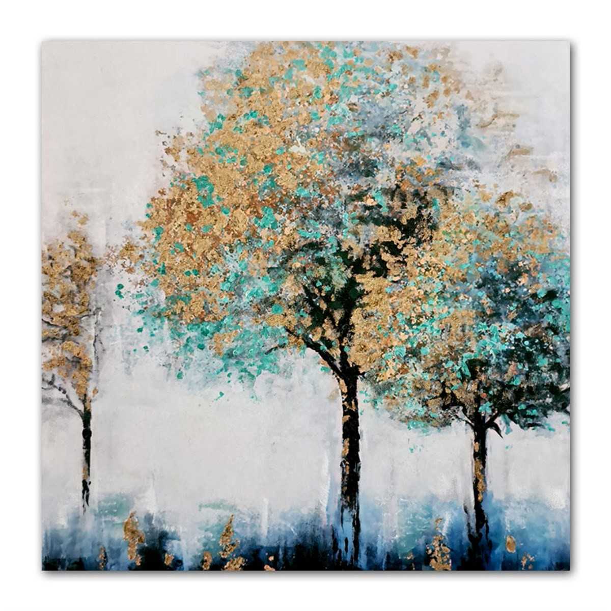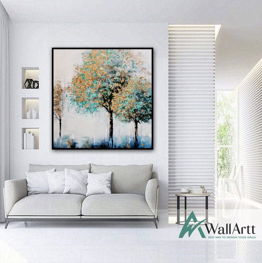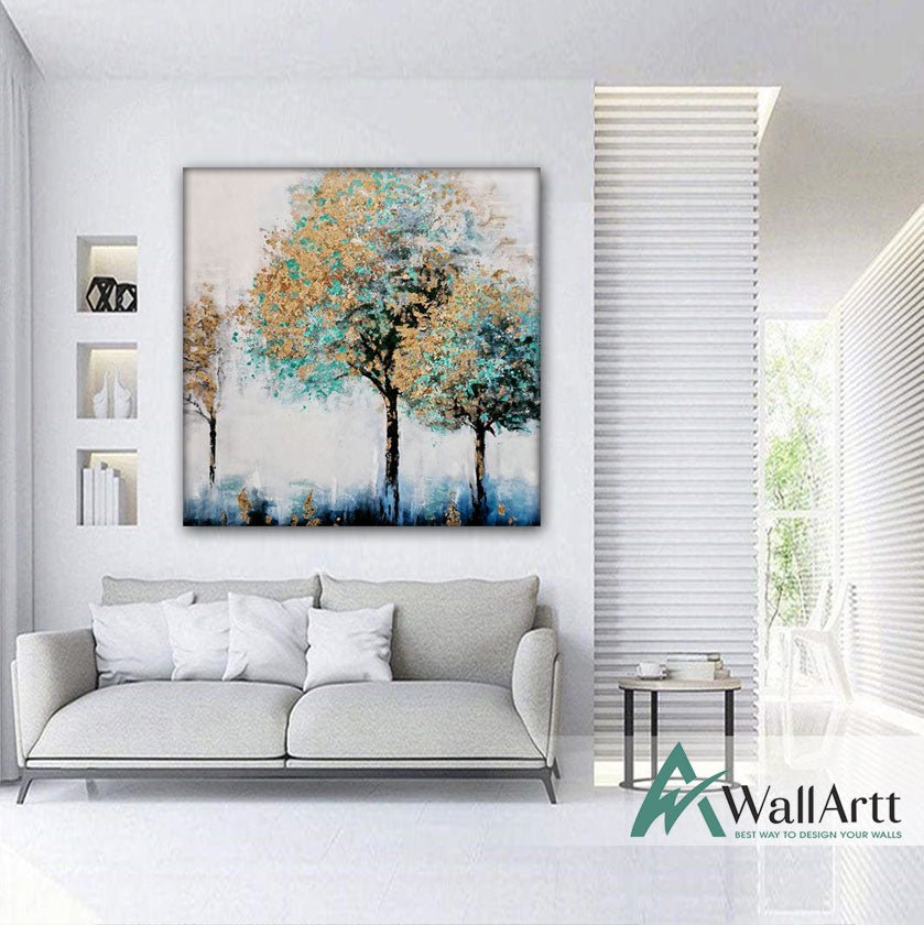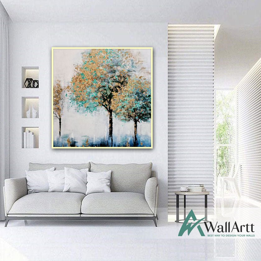 Abstract Gold Blue Trees Textured Partial Oil Painting