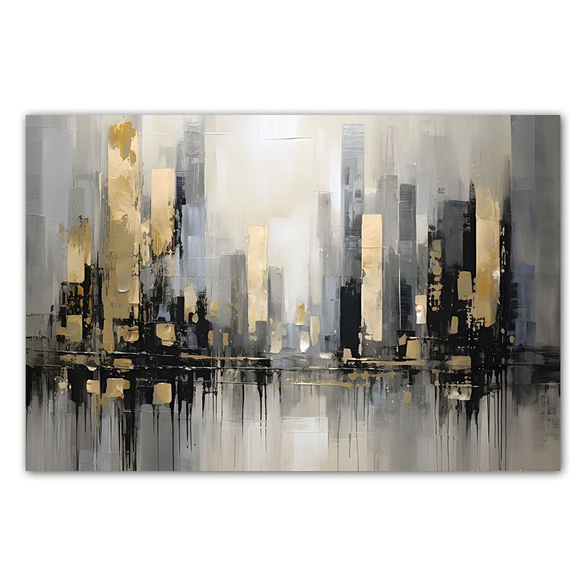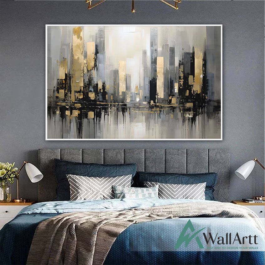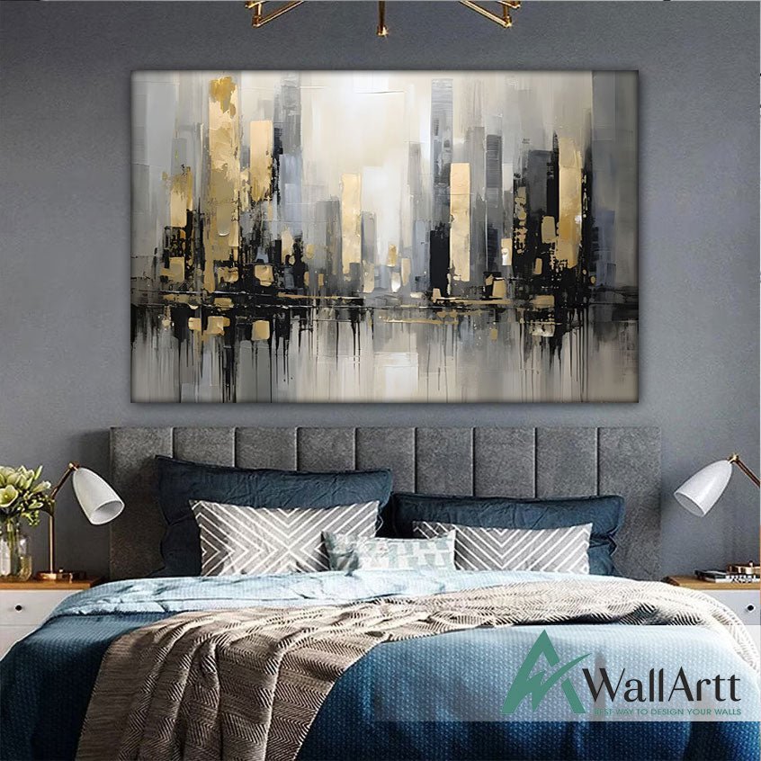 Abstract Gold City Textured Partial Oil Painting - Wall Art