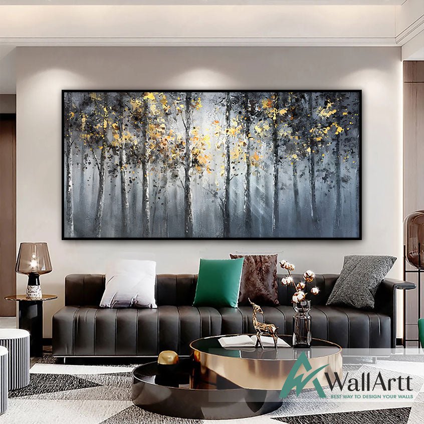 Abstract Gold Forest II Textured Partial Oil Painting - Wall Art