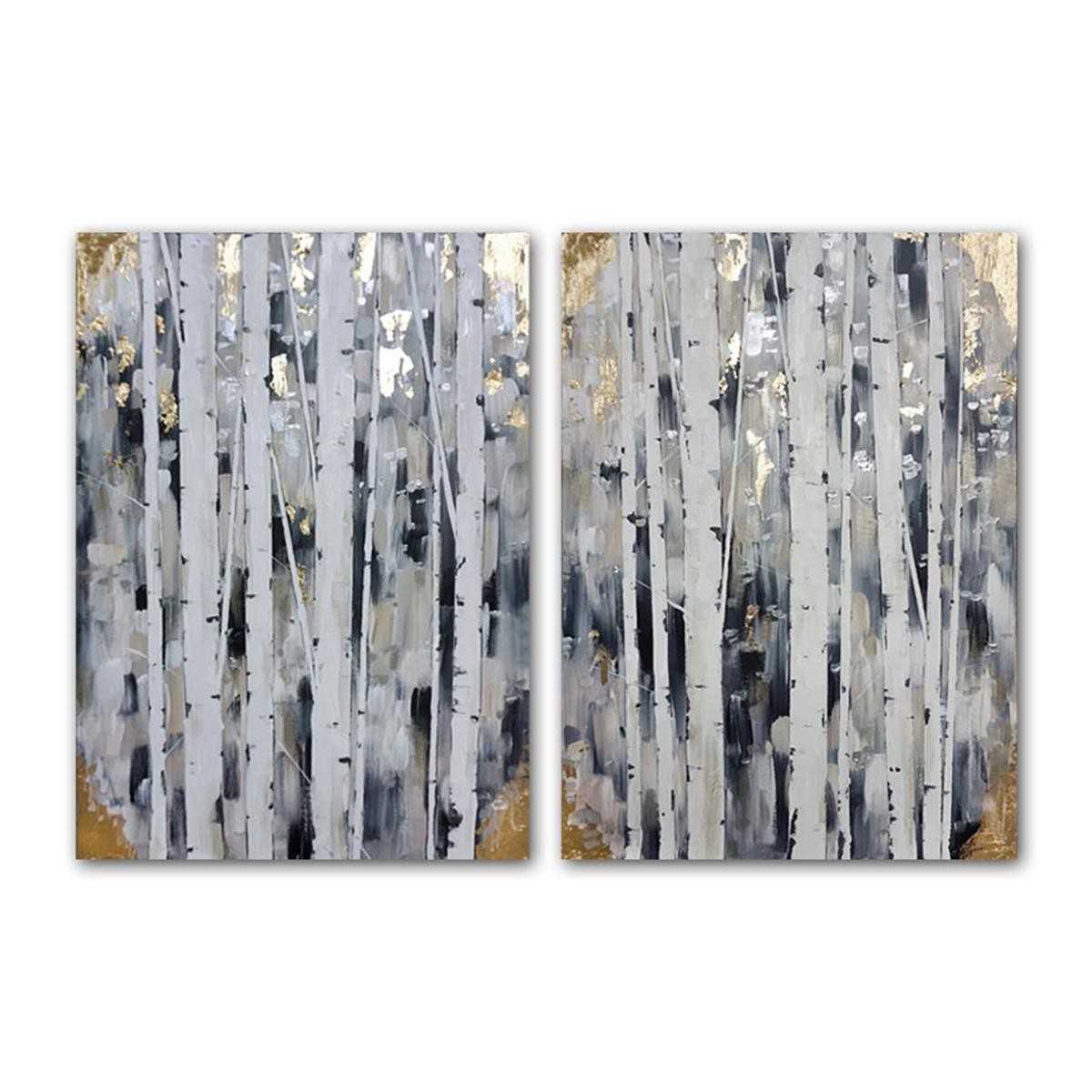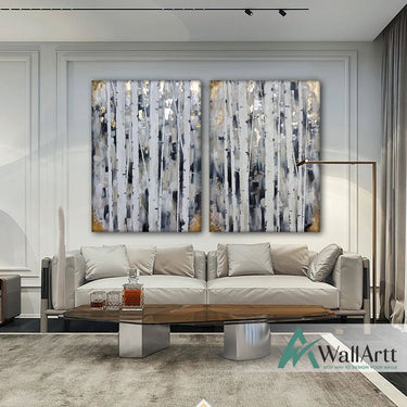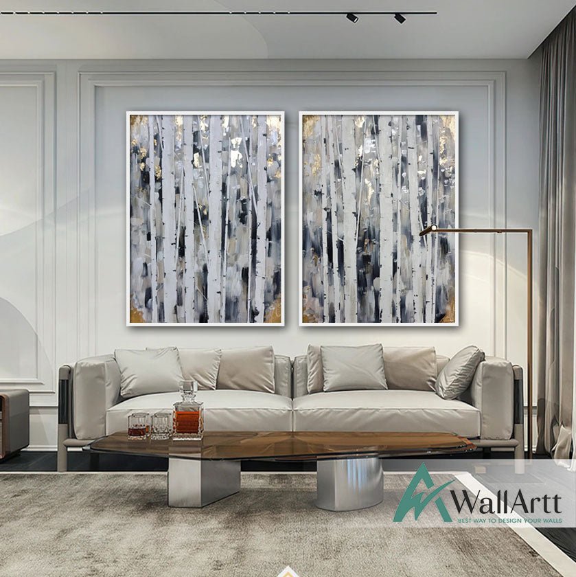 Abstract Gold Trees 2 Piece Textured Partial Oil Painting