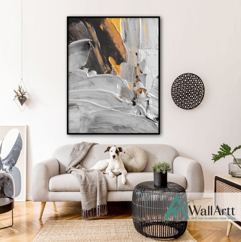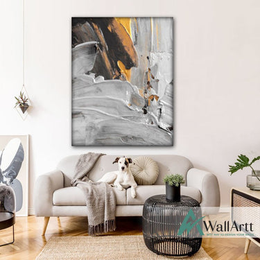 Abstract Gold White Textured Partial Oil Painting