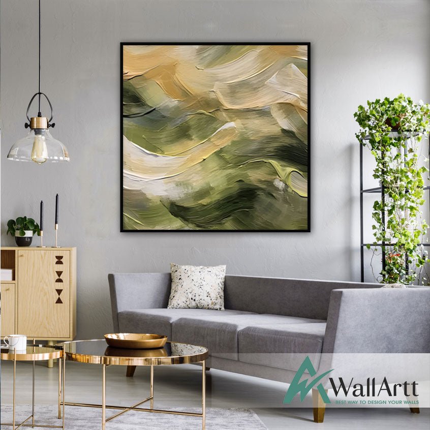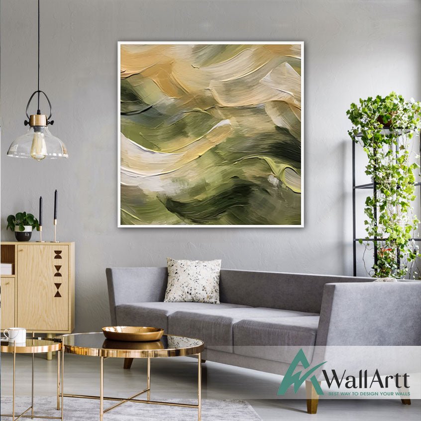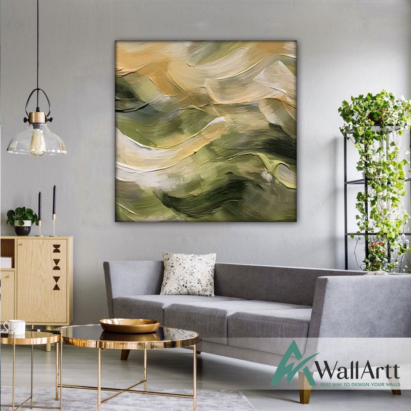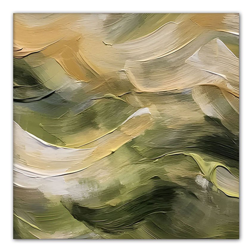 Abstract Green Waves Textured Partial Oil Painting - Wall Art