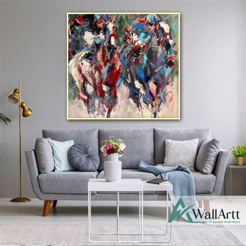 Our textured partial oil paintings are partially oil-painted artworks on printed canvases, created by our artists.