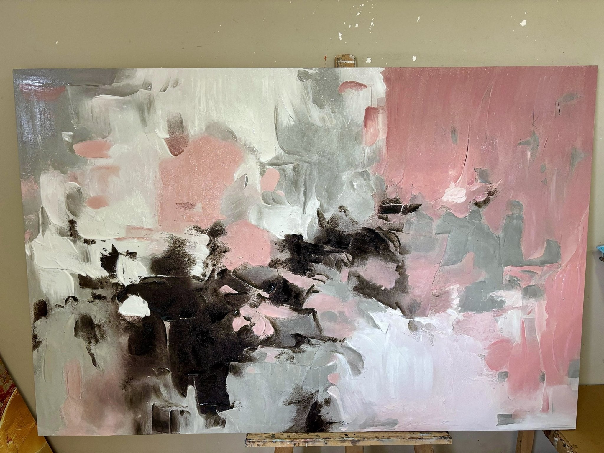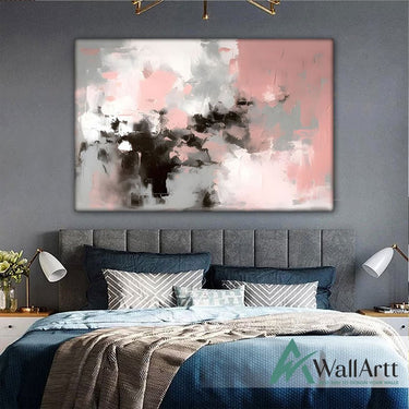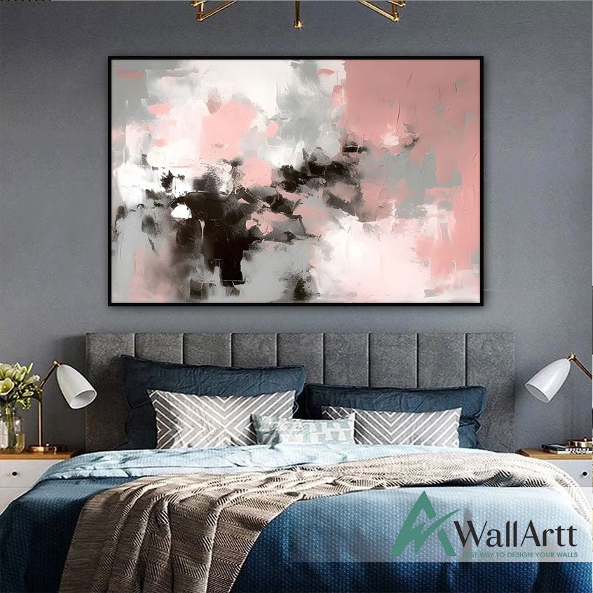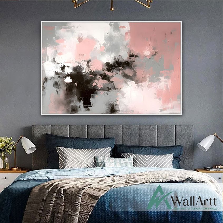 Abstract Light Pink Textured Partial Oil Painting - Wall Art