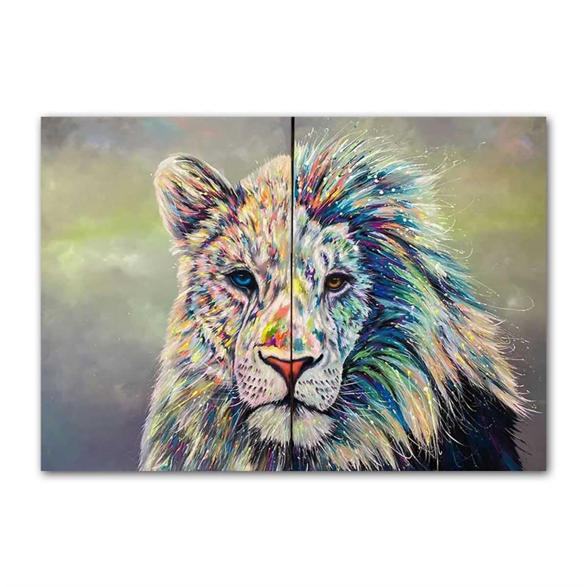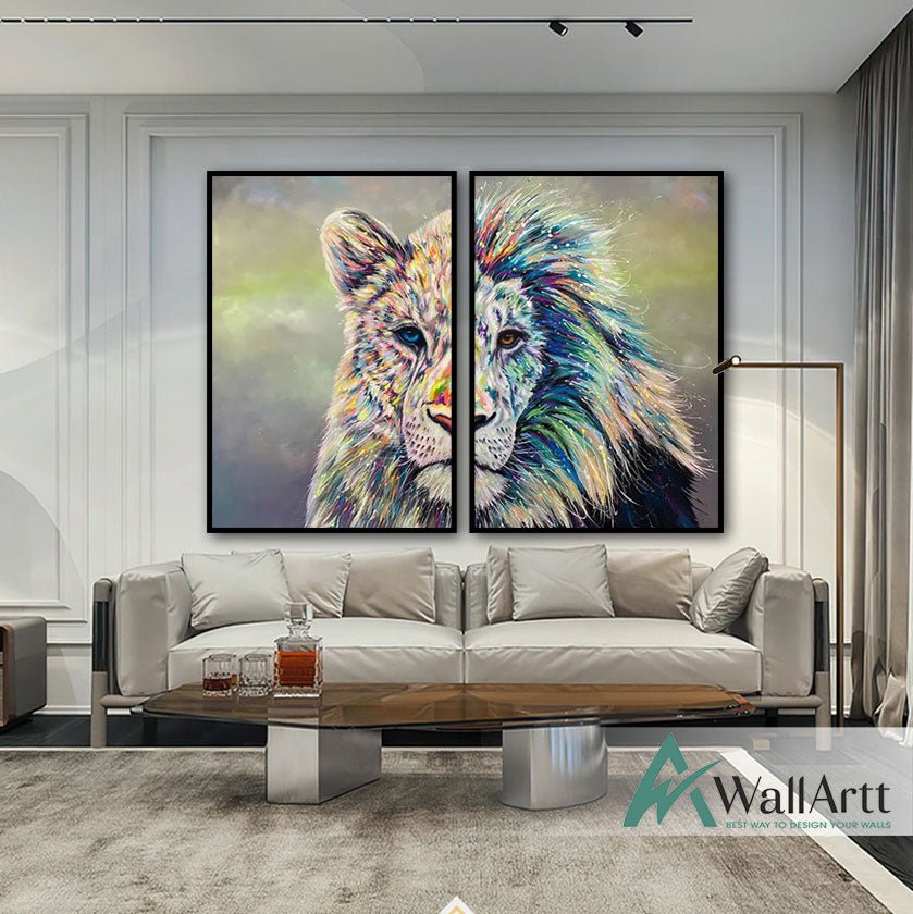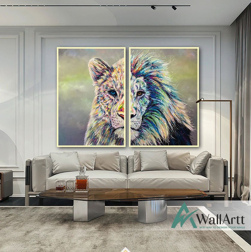 Abstract Lion 2 Piece Textured Partial Oil Painting