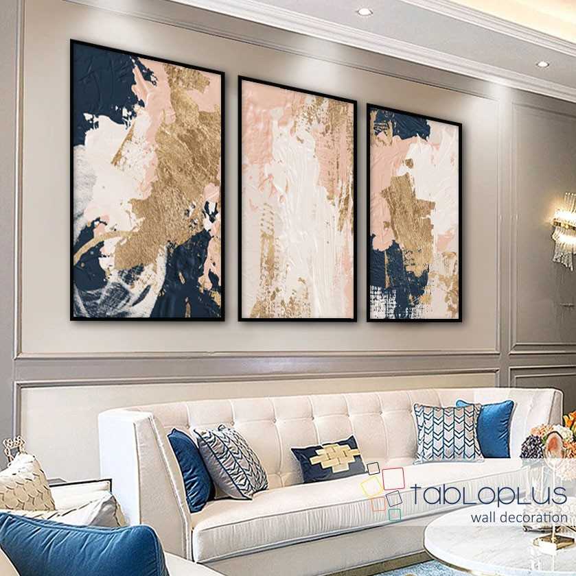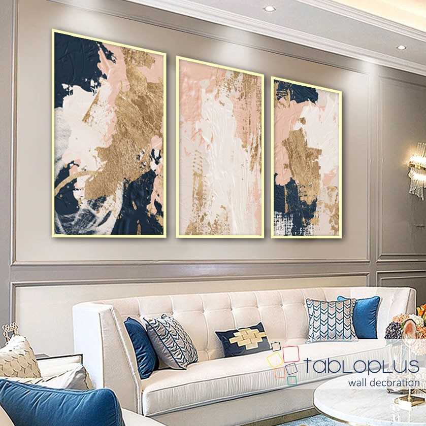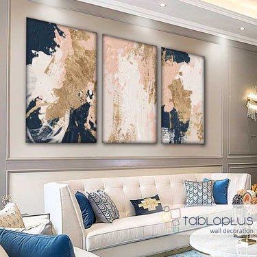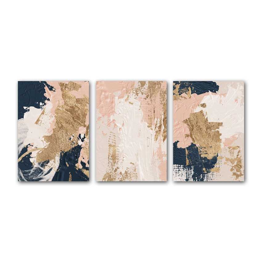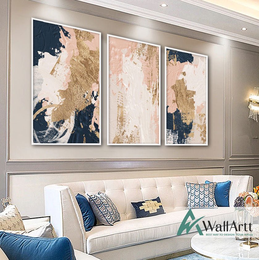 Abstract Navy & Gold 3 Piece Textured Partial Oil Painting