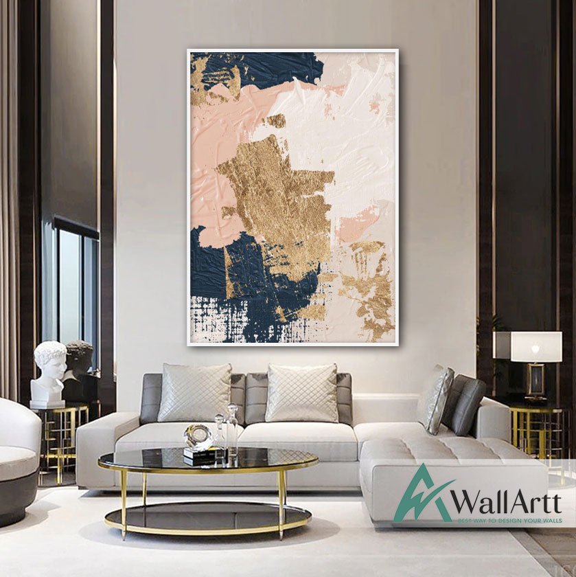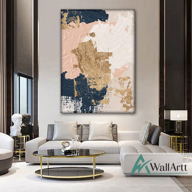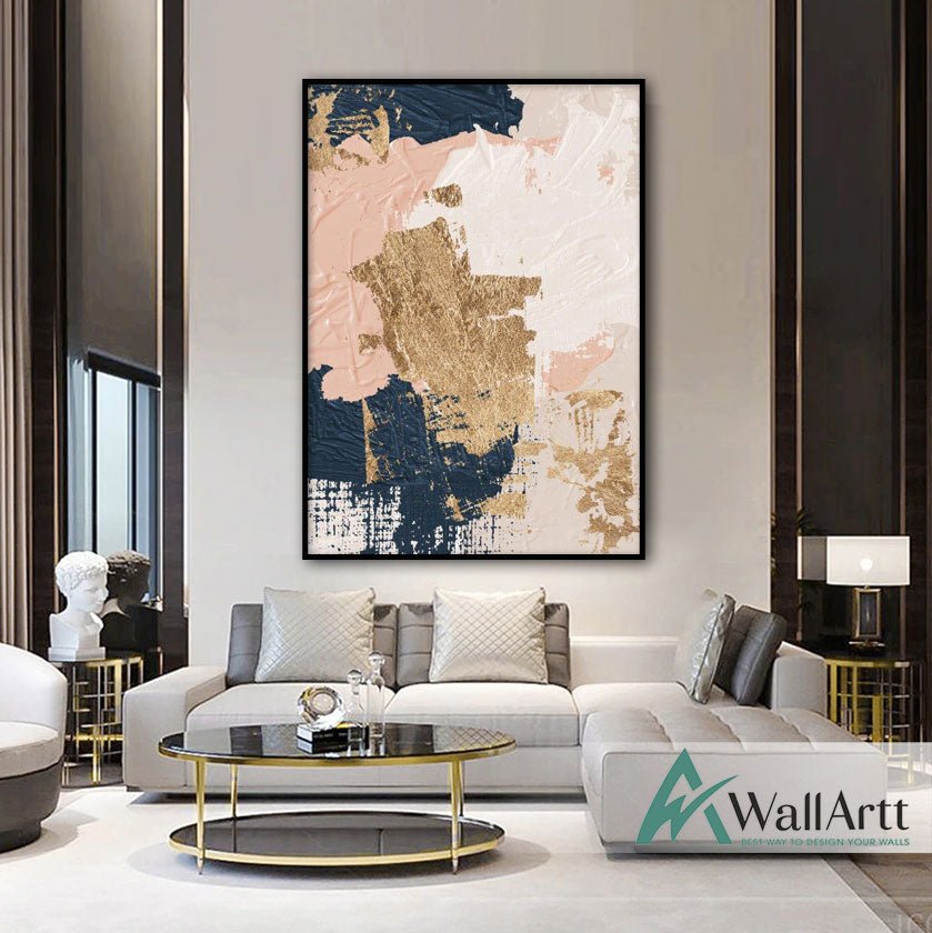 Abstract Navy & Gold III Textured Partial Oil Painting