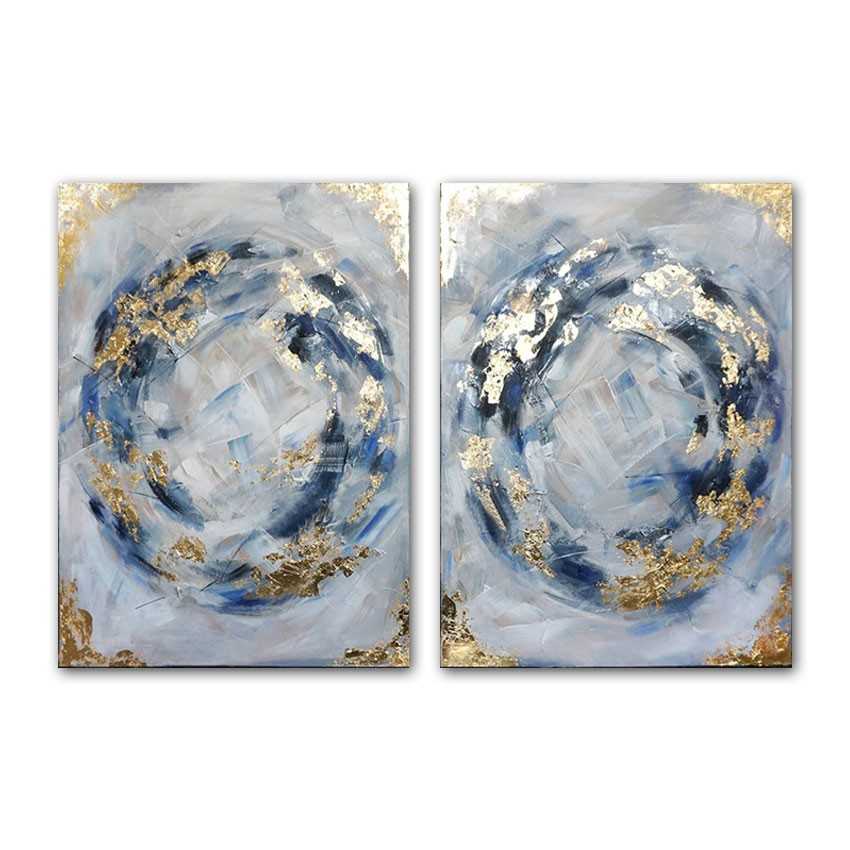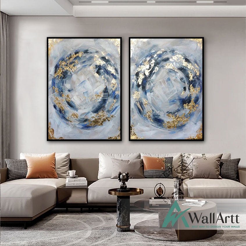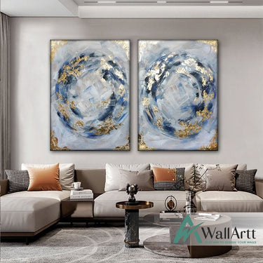 Abstract Navy with Gold Foil 2 Piece Textured Partial Oil Painting