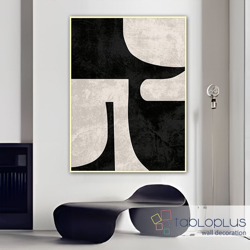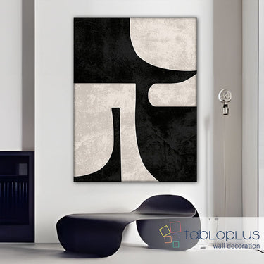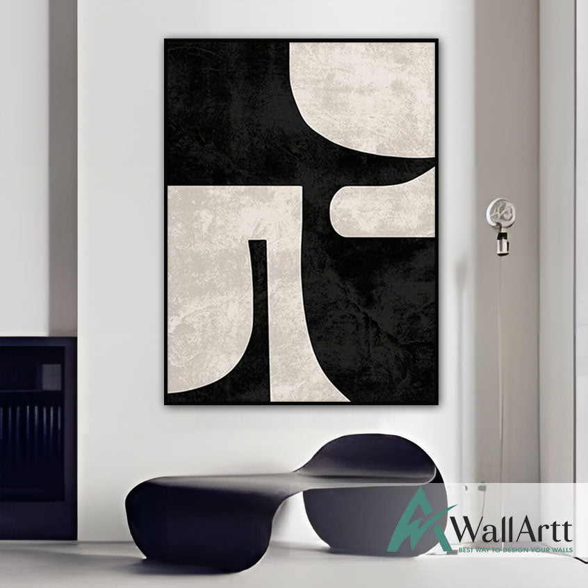 Abstract Off White Black Textured Partial Oil Painting