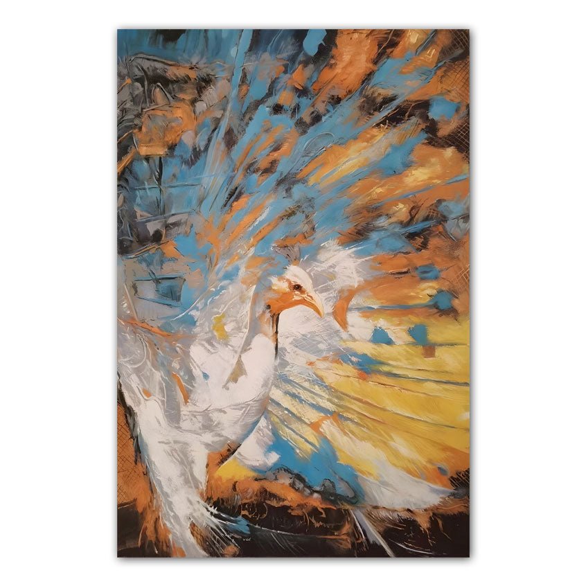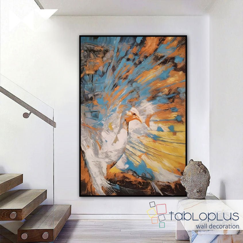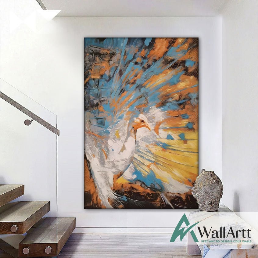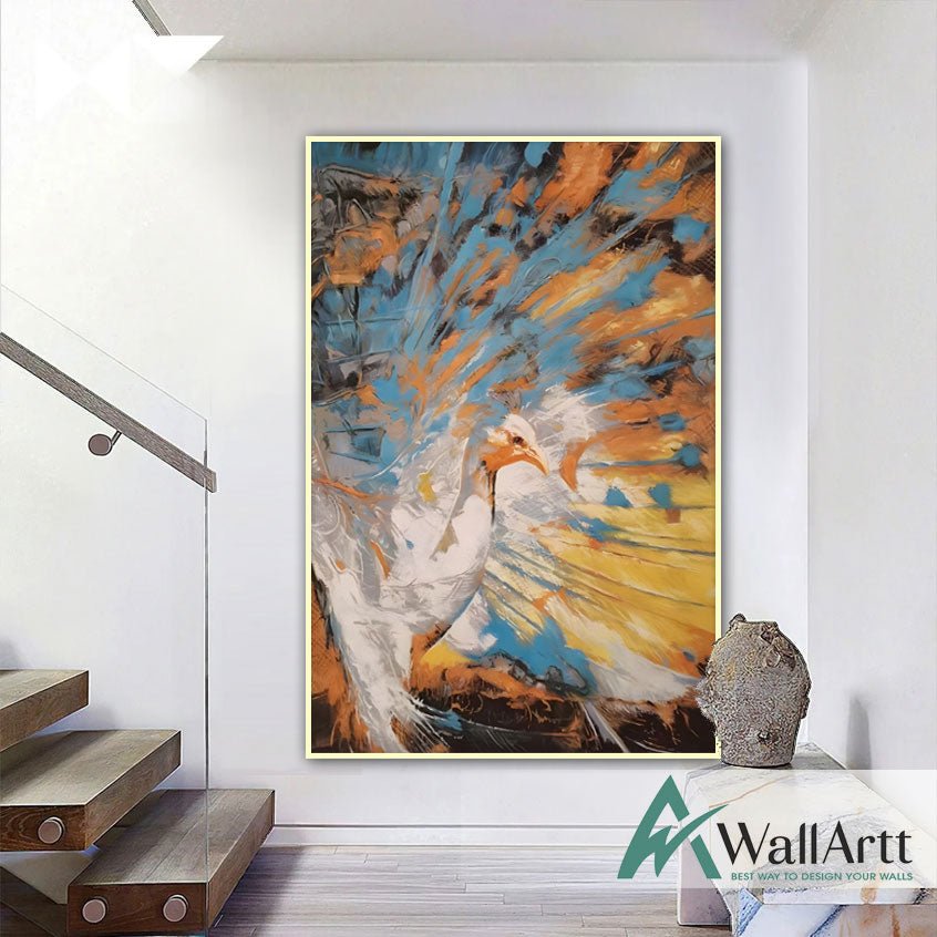 Abstract Orange Blue Peacock II Textured Partial Oil Painting