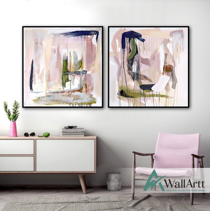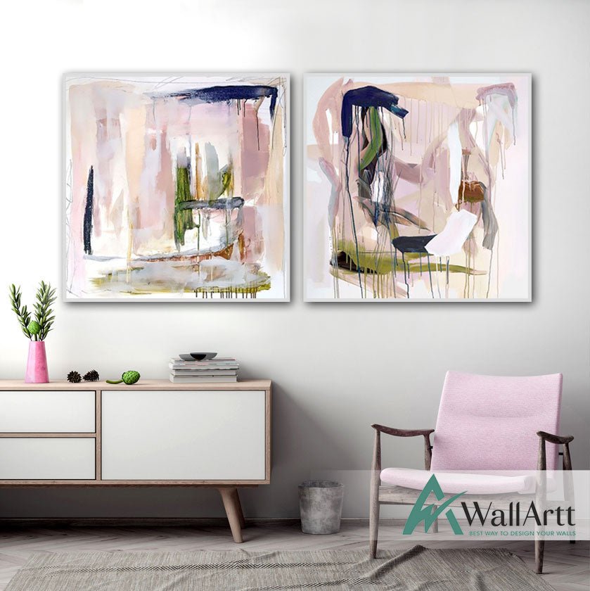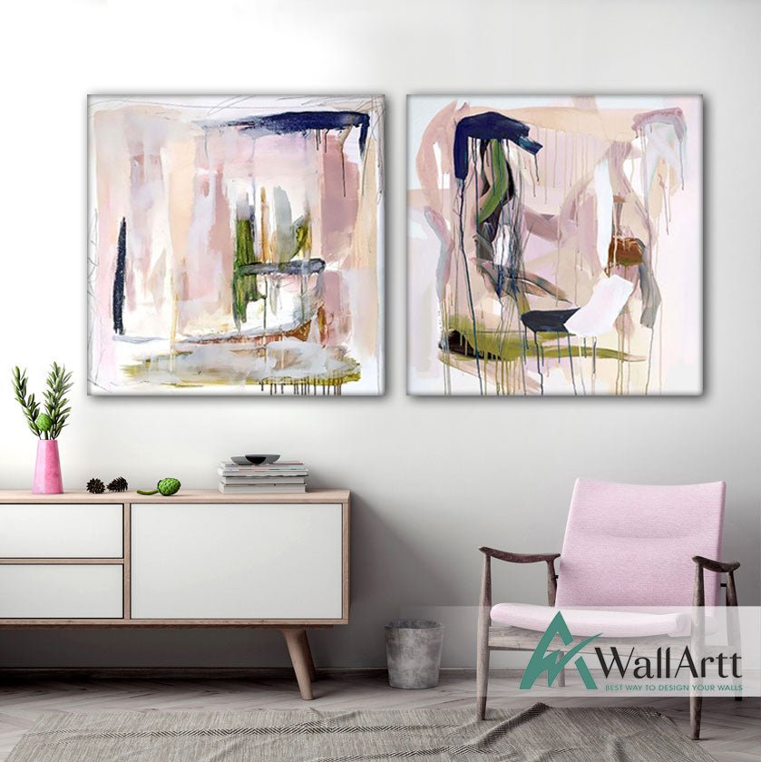 Abstract Pink 2 Piece Textured Partial Oil Painting