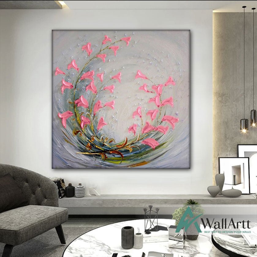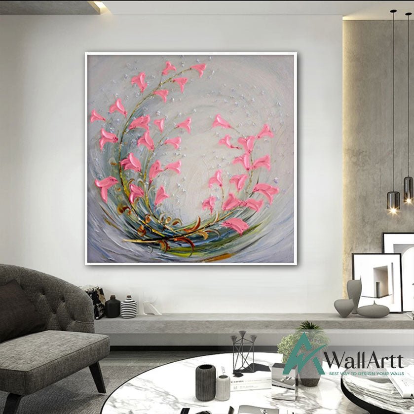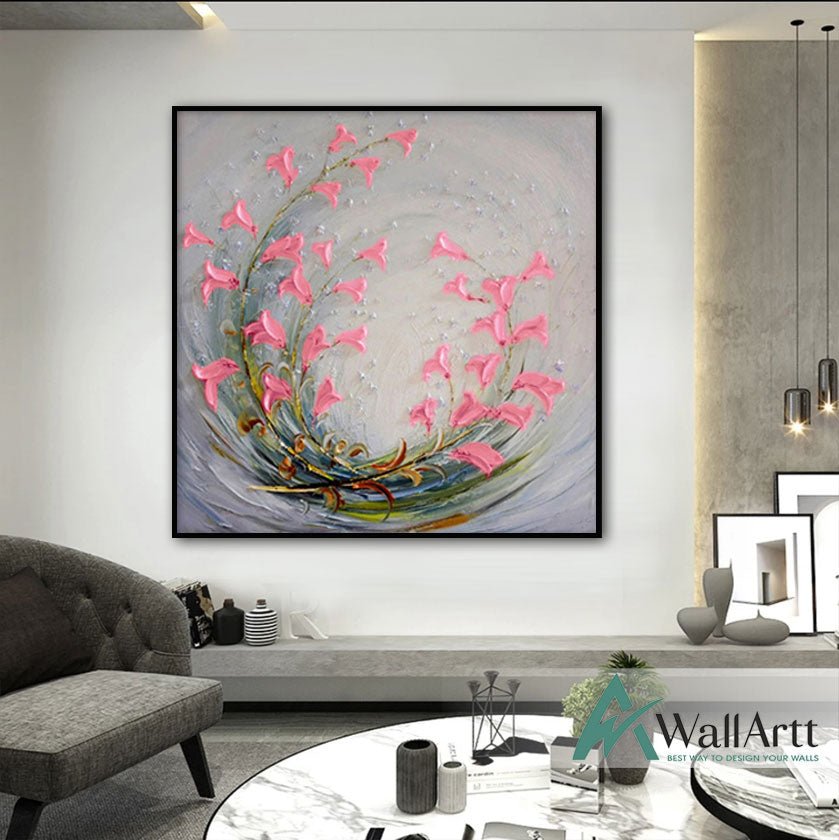 Abstract Pink Flower Tornado Textured Partial Oil Painting