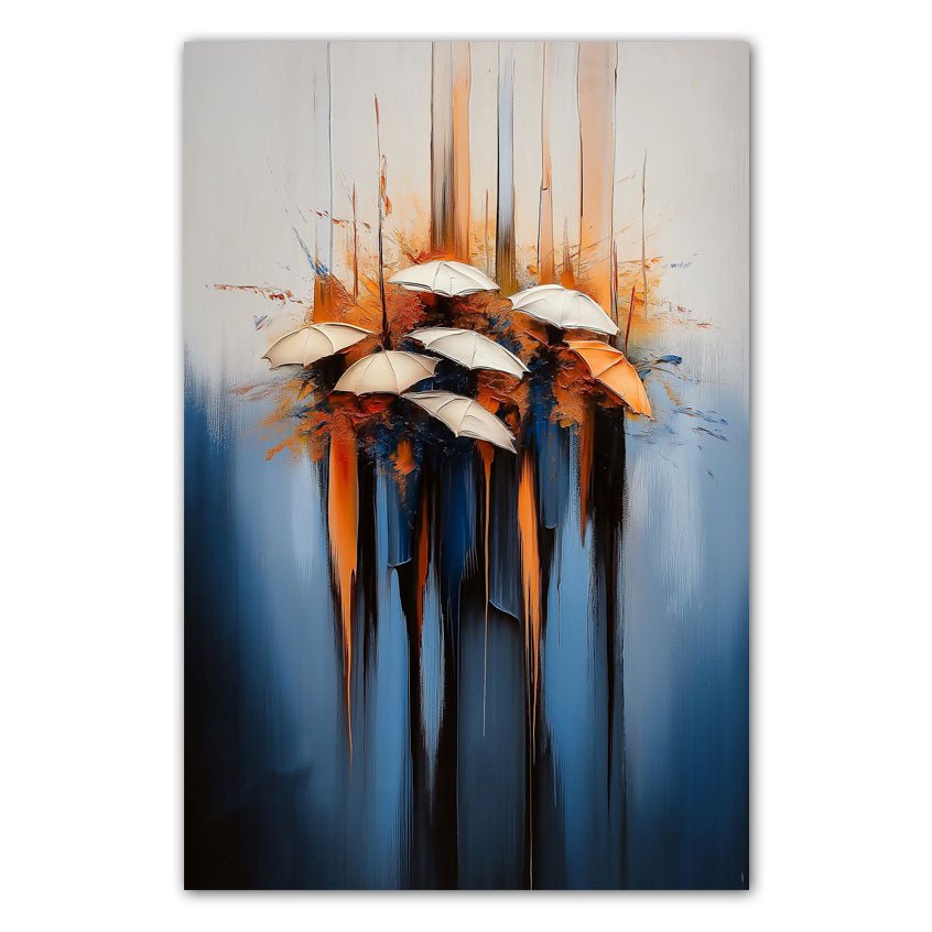 Abstract Umbrellas Textured Partial Oil Painting - Wall Art