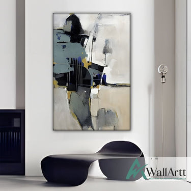 Abstract White & Grey I Textured Partial Oil Painting - Wall Art