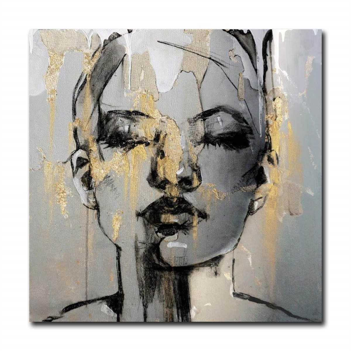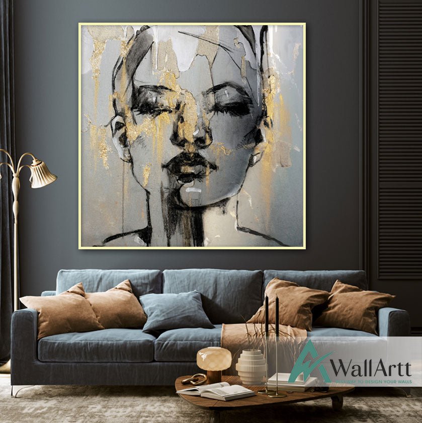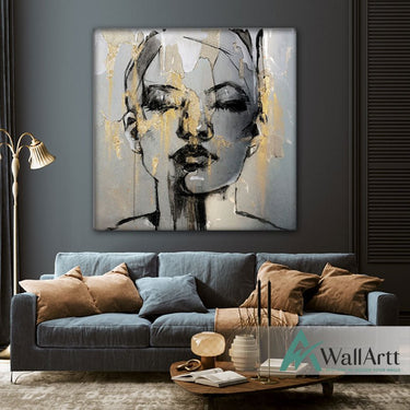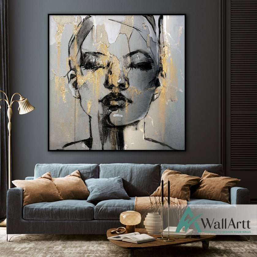 Abstract Woman with Gold Foil Textured Partial Oil Painting