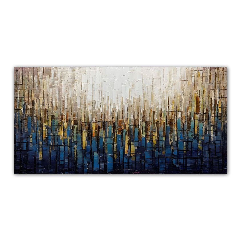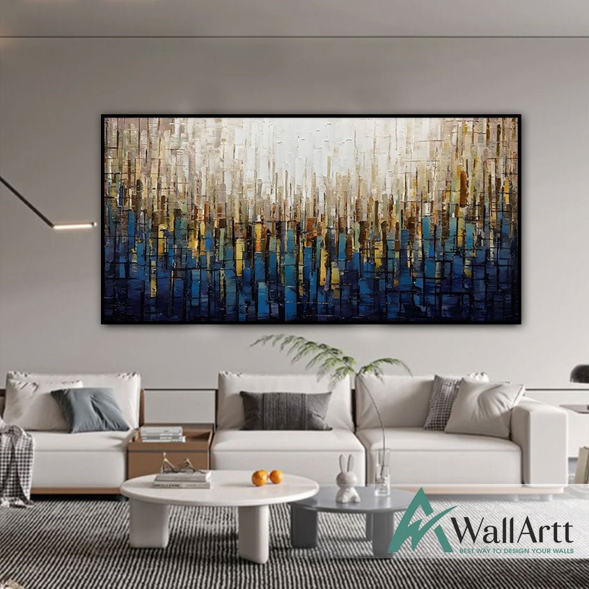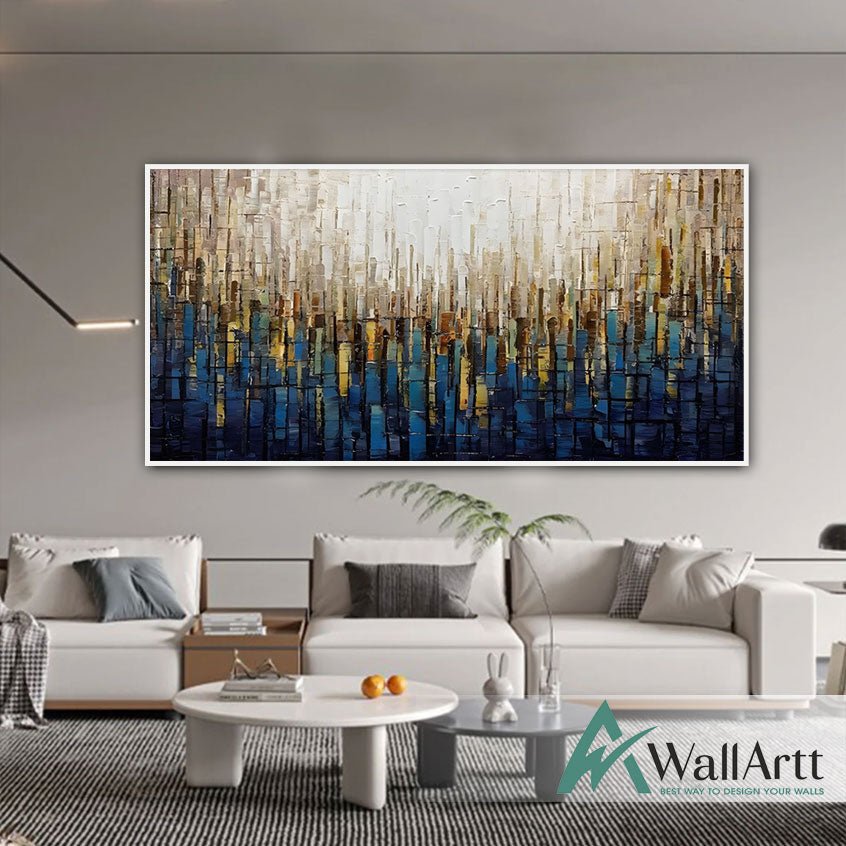 Abstract Yellow Blue Bars Textured Partial Oil Painting - Wall Art