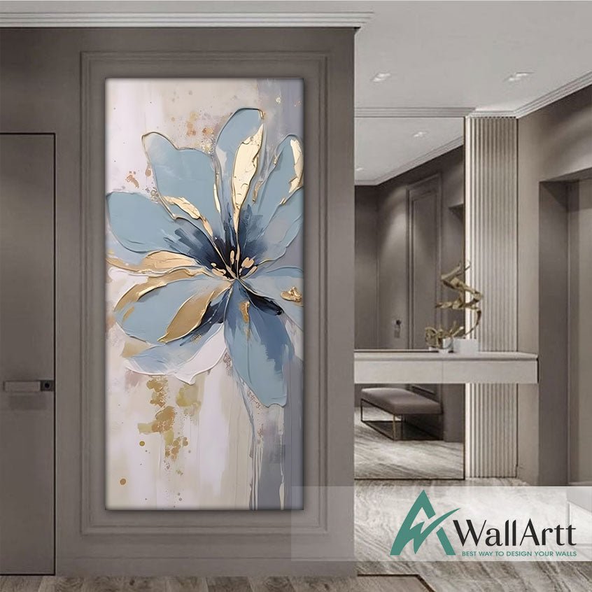 Baby Blue Flower Textured Partial Oil Painting - Wall Art