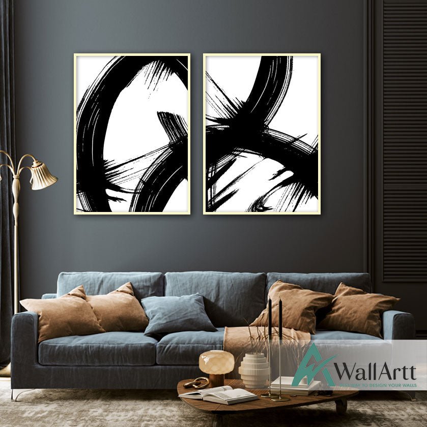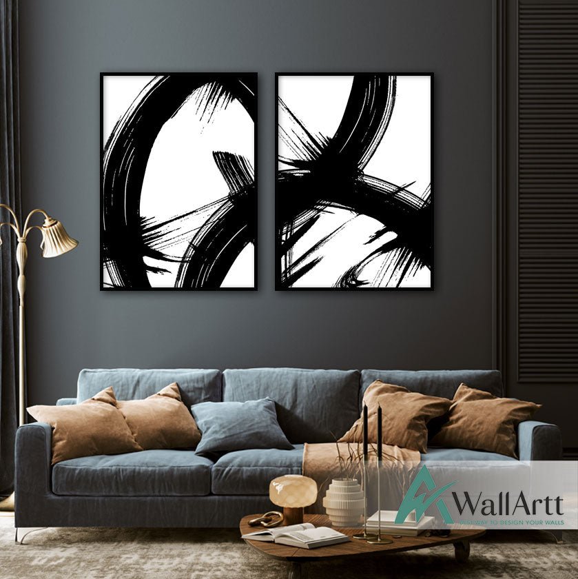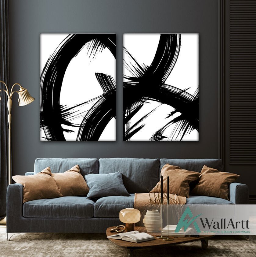 Black Abstract 2 Piece Textured Partial Oil Painting