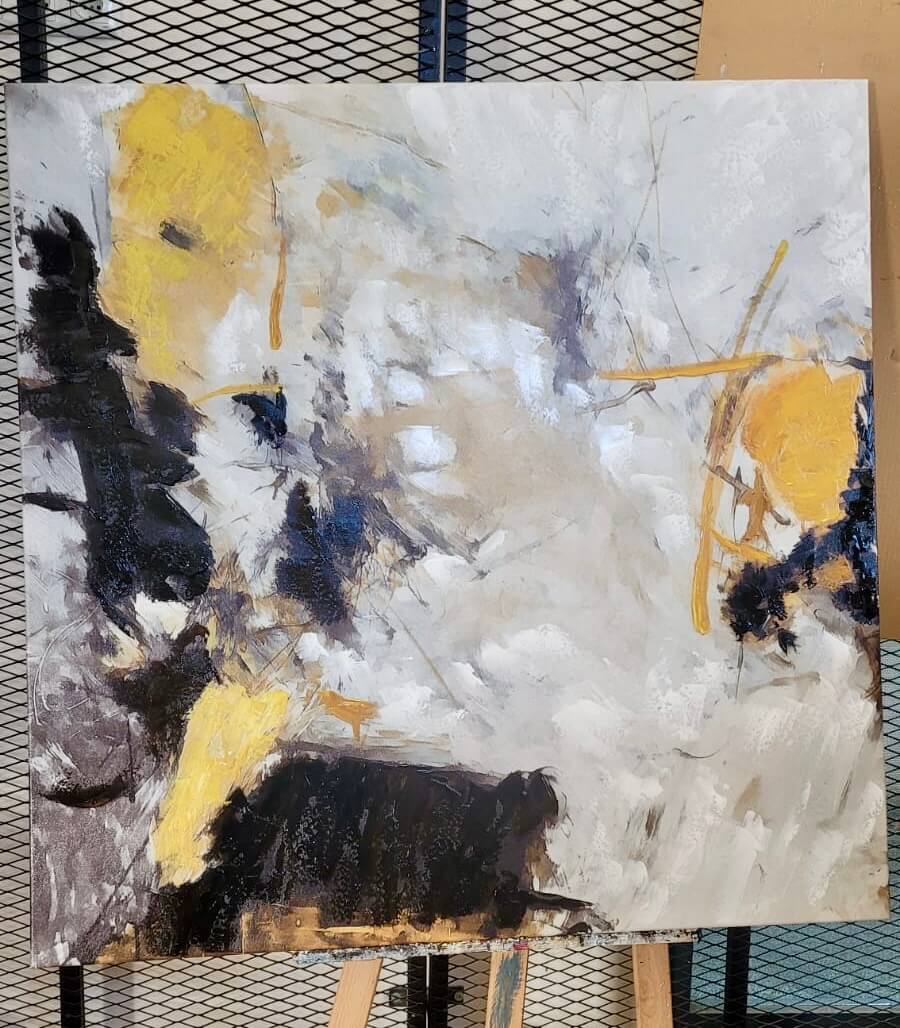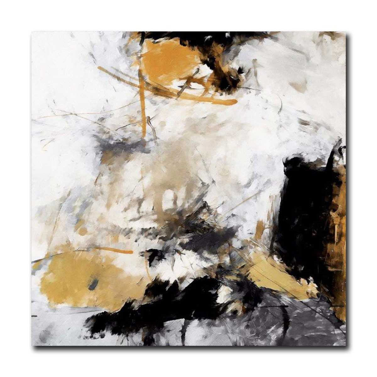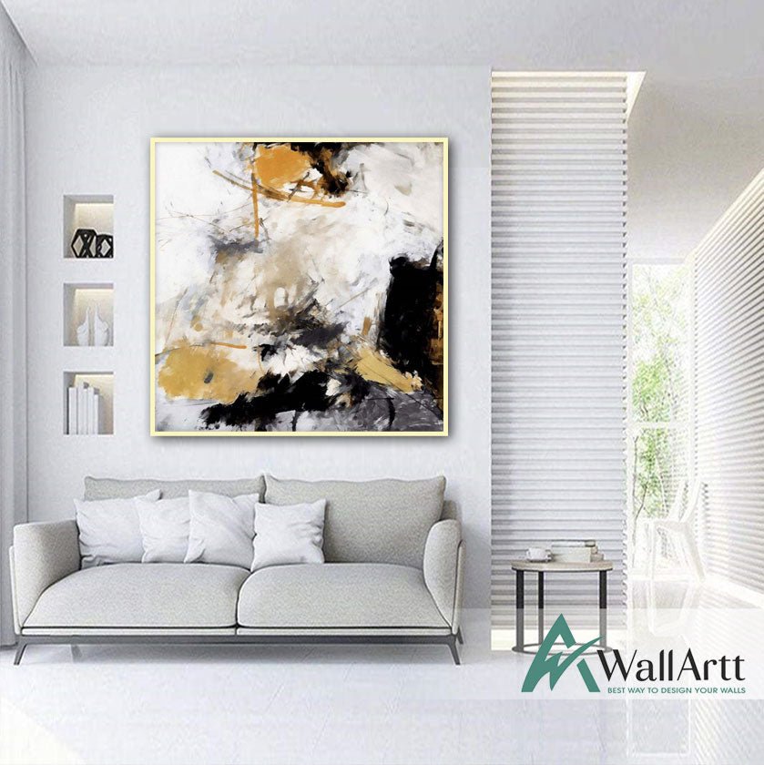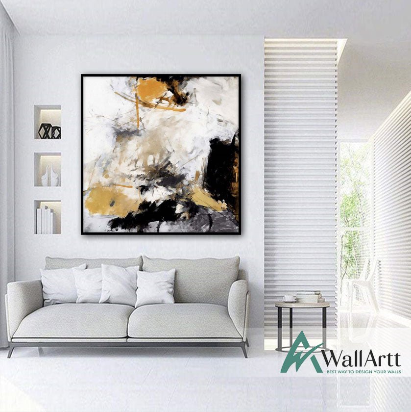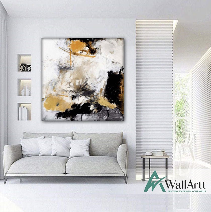 Black n Mustard Abstract Textured Partial Oil Painting