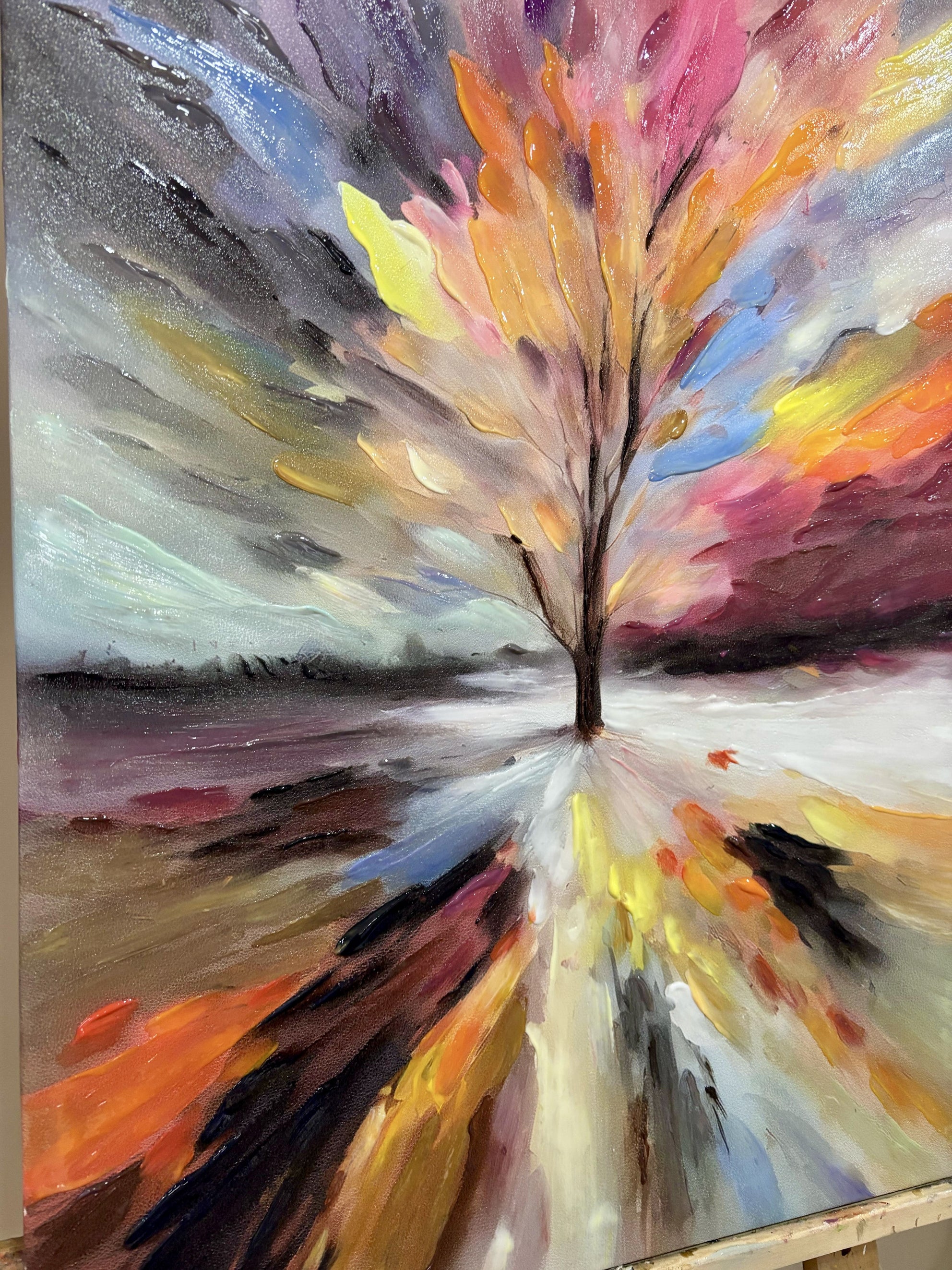 Colorful Tree Textured Partial Oil Painting - Wall Art